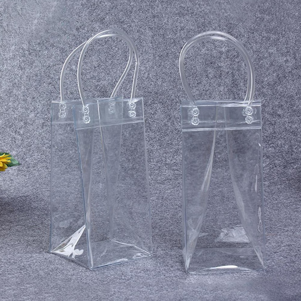 Clear PVC ice bag, recyclable.