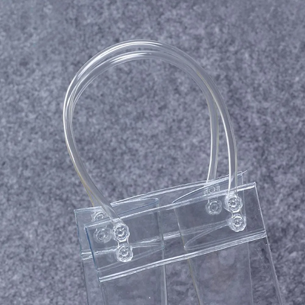 Clear PVC ice bag, recyclable.