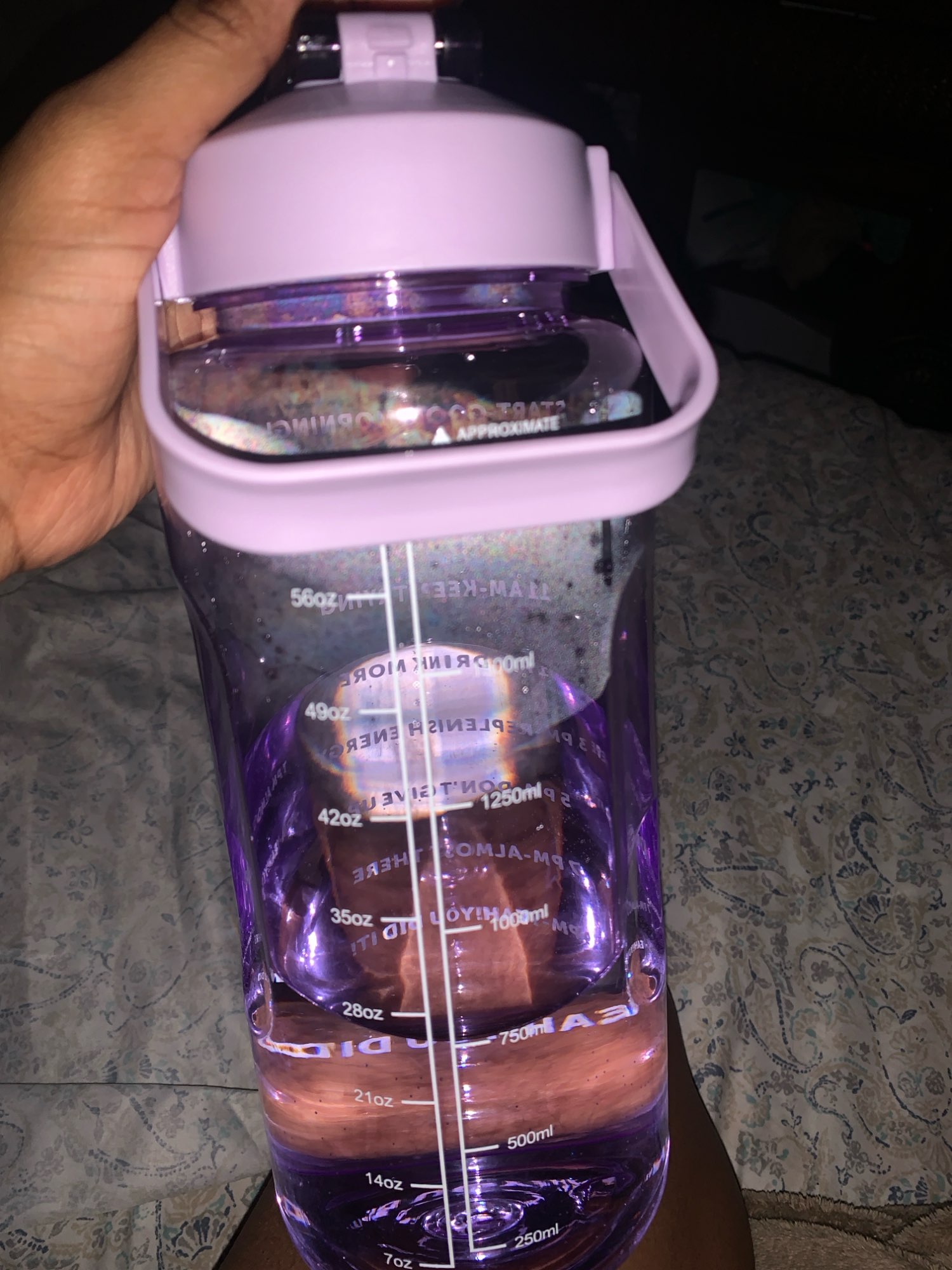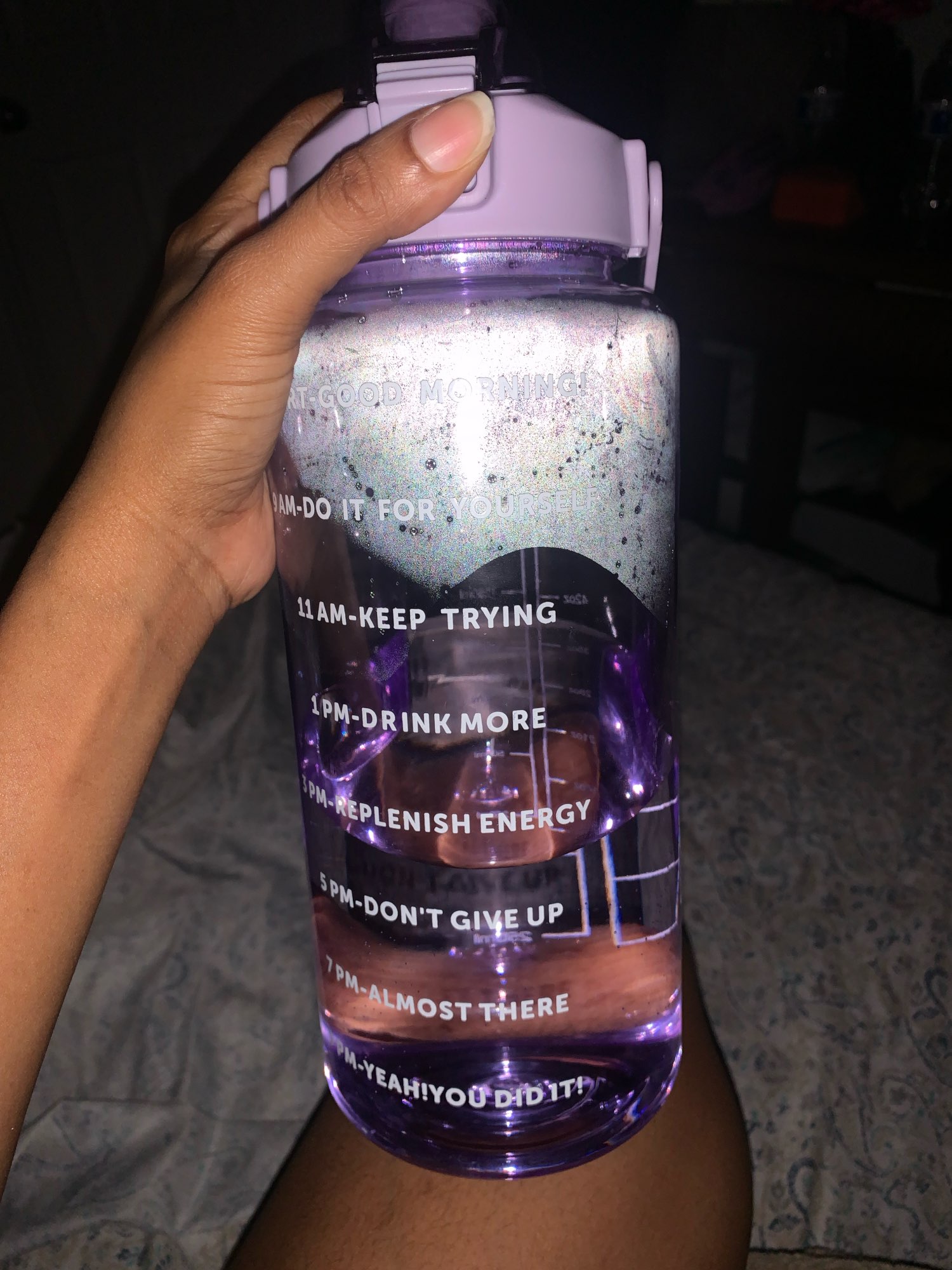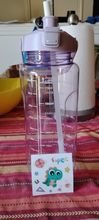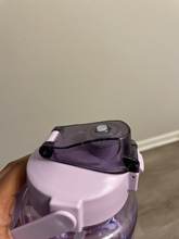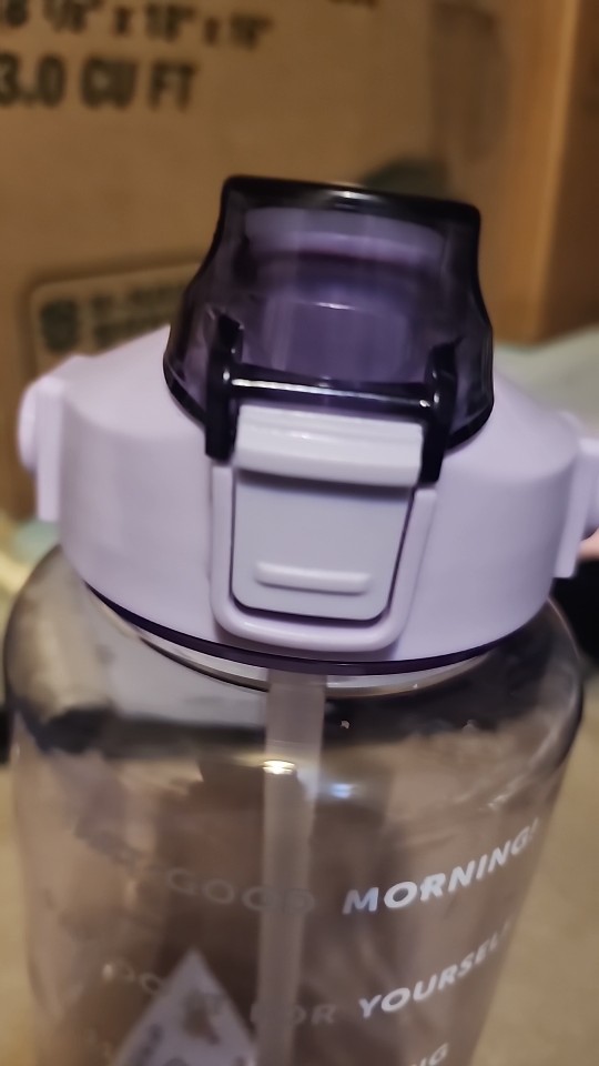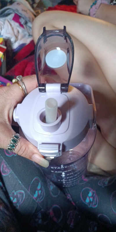 I had ordered both lavender & (green) light blue for my kids for school. The words of encouragement on the bottle are a great positive. The button on the mouth spout has 2 uses. the bottom of the button to open & push up to lock the lid closed.