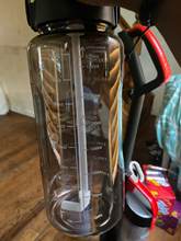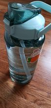 These bottles are so cool! I bought a bunch of them and I am very happy. They hold a little over 2 liters, have a carrying function, a button to open the spout cover which prevents germs from getting on the mouth piece, and a straw that pops up. Highly recommend!