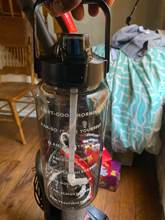 SO BIG!!! i knew the bottle was gonna be hefty but not this big 😧 ordered it for band camp. straw doesnt come with instructions, but if you have common sense youll be able to put it together + it comes with little stickers