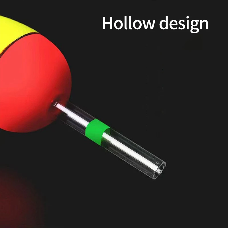 2. Design:The float top is also equipped with transparent plastic pipes with luminous rods inserted, making it convenient for fishing at night. The inner diameter of the plastic tube is 4.5mm and 9mm, and can accommodate various specifications of luminous rods.