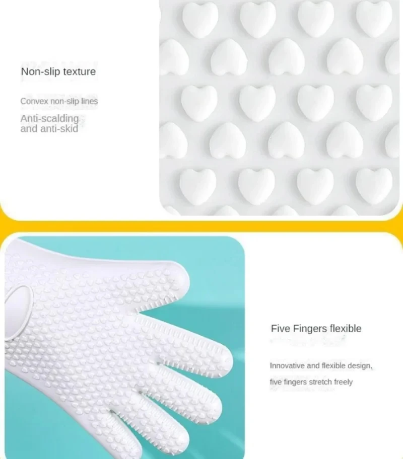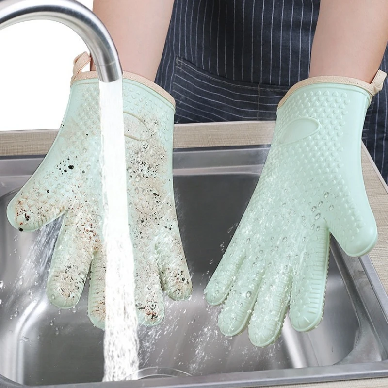 2PCS Baking Gloves Thickened Silicone Oven Mitts Anti Scalding Microwave Oven Gloves Heat Resistant Non Slip Kitchen Gloves