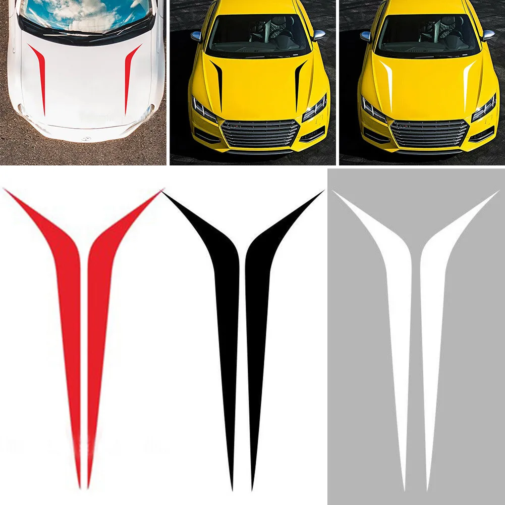 2Pcs Car Hood Stickers Auto Hood Stripes Sticker DIY Bonnet Decor Accessories For BMW Honda Toyota Car Stickers and Decals