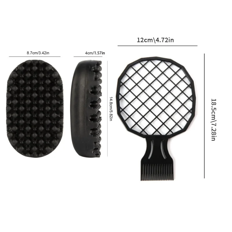 The combo set includes a black hair grid comb and a rubber curling brush, providing you with everything you need for perfect hair styling.