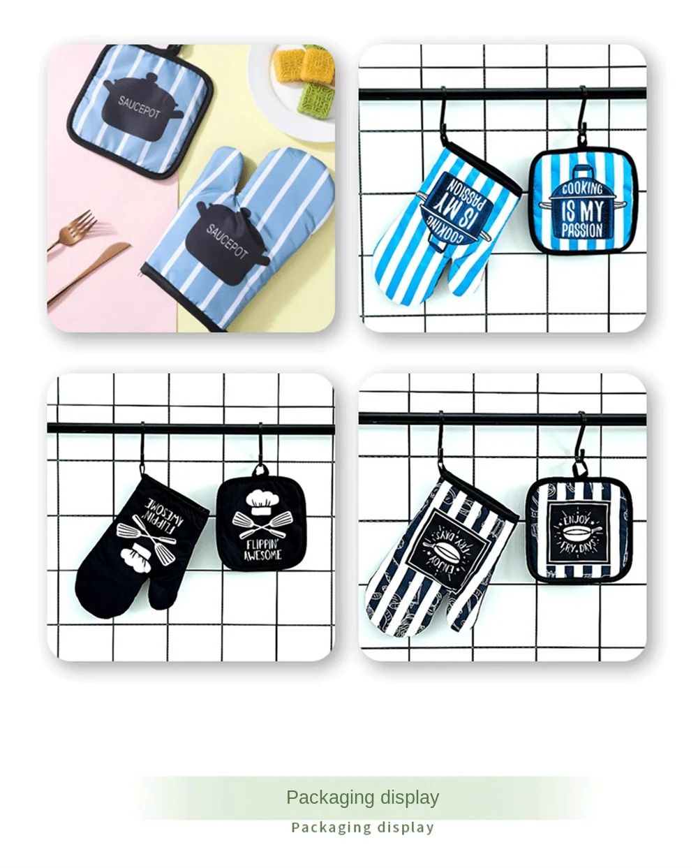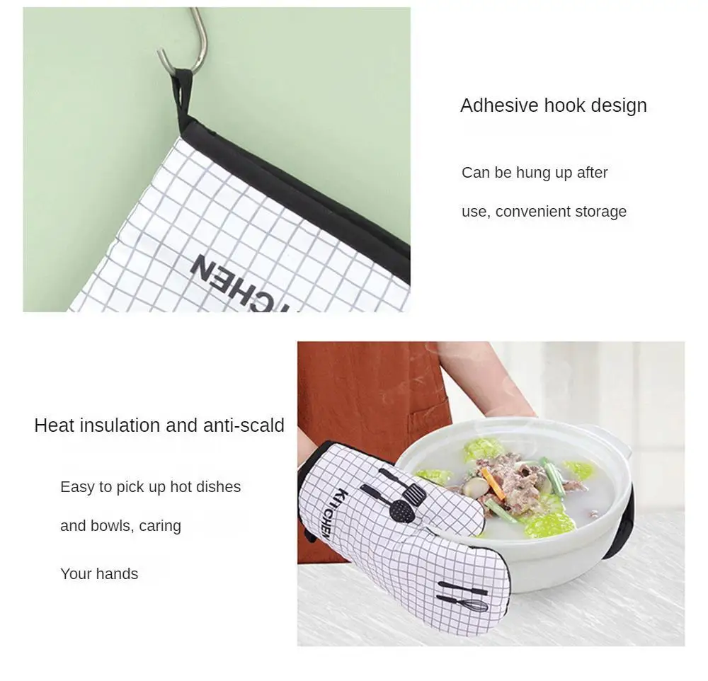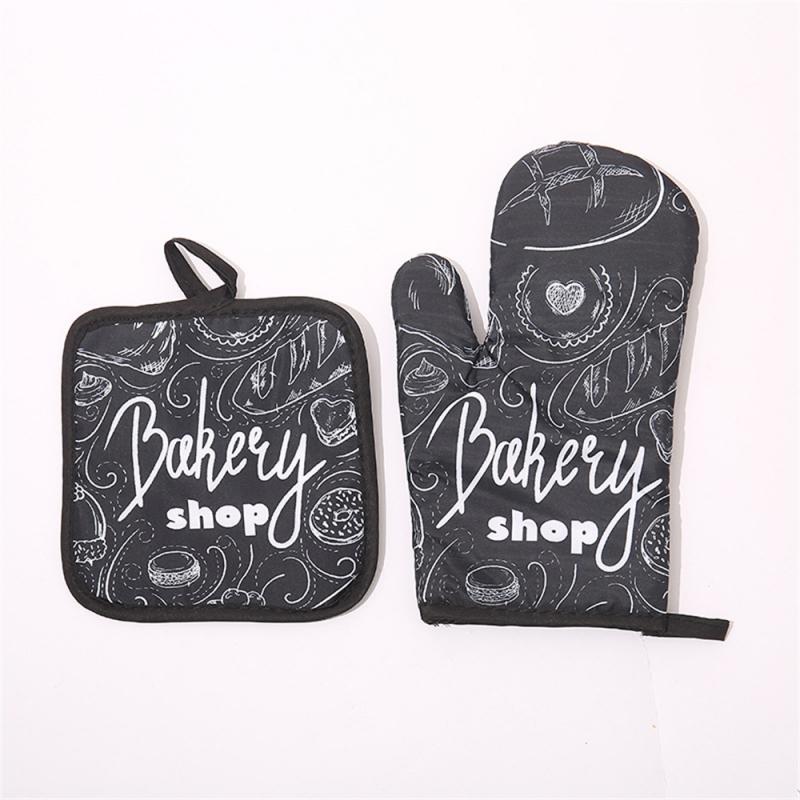 2pcs Kitchen Potholders Pad and Stove Oven Gloves Set Mitts Heat Resistant Thermal Anti-heat Take Hot Pot Cooking Baking Gloves