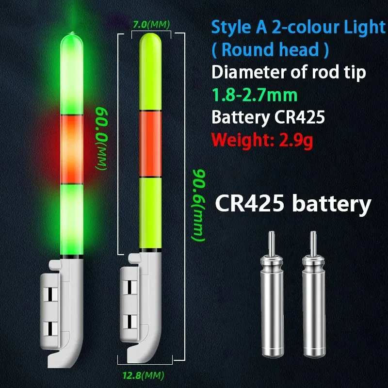 2PCS Luminous Light Glow Stick+2 CR425 Disposable Battery Rock Fishing Float Warning Light Electric Fish Rod Lamp Stick Tackle
