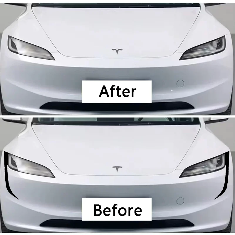 2Pcs/Set Car Sticker For Tesla Model 3 Highland 2024 Headlight Strips Bumper Fang Shadow Decals Auto Exterior Accessories