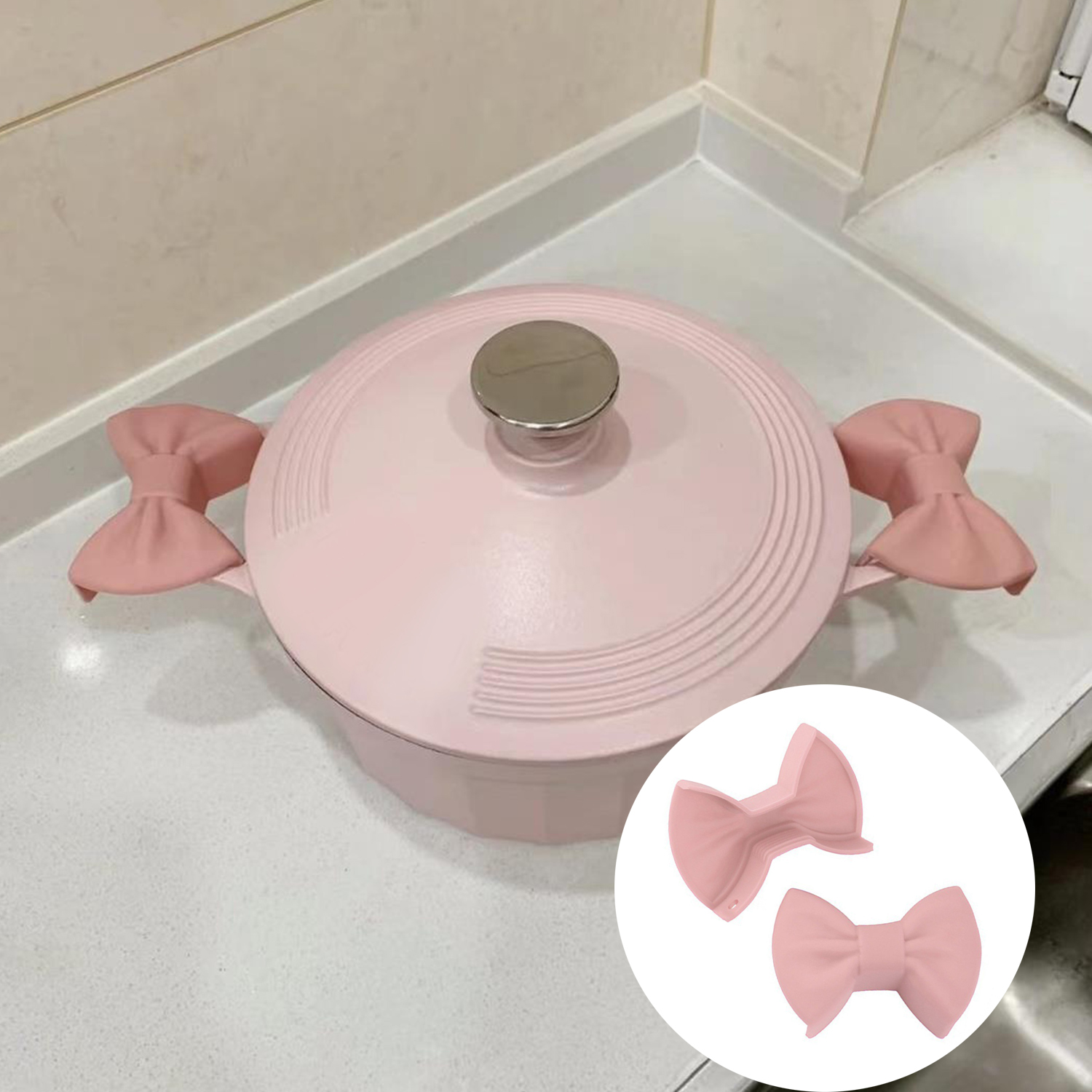 Lovely Shape:The unique and bright bow shape helps to decorate and easy to find and use.Each edge has a small hole,can easily hang on the oven door handle or hang on the hook,easy storage does not take up space.Bring more convenience to your life.