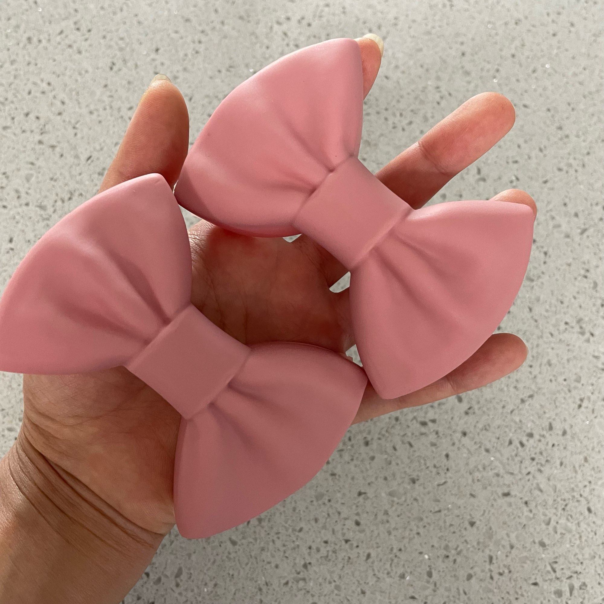 Lovely Shape:The unique and bright bow shape helps to decorate and easy to find and use.Each edge has a small hole,can easily hang on the oven door handle or hang on the hook,easy storage does not take up space.Bring more convenience to your life.