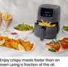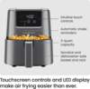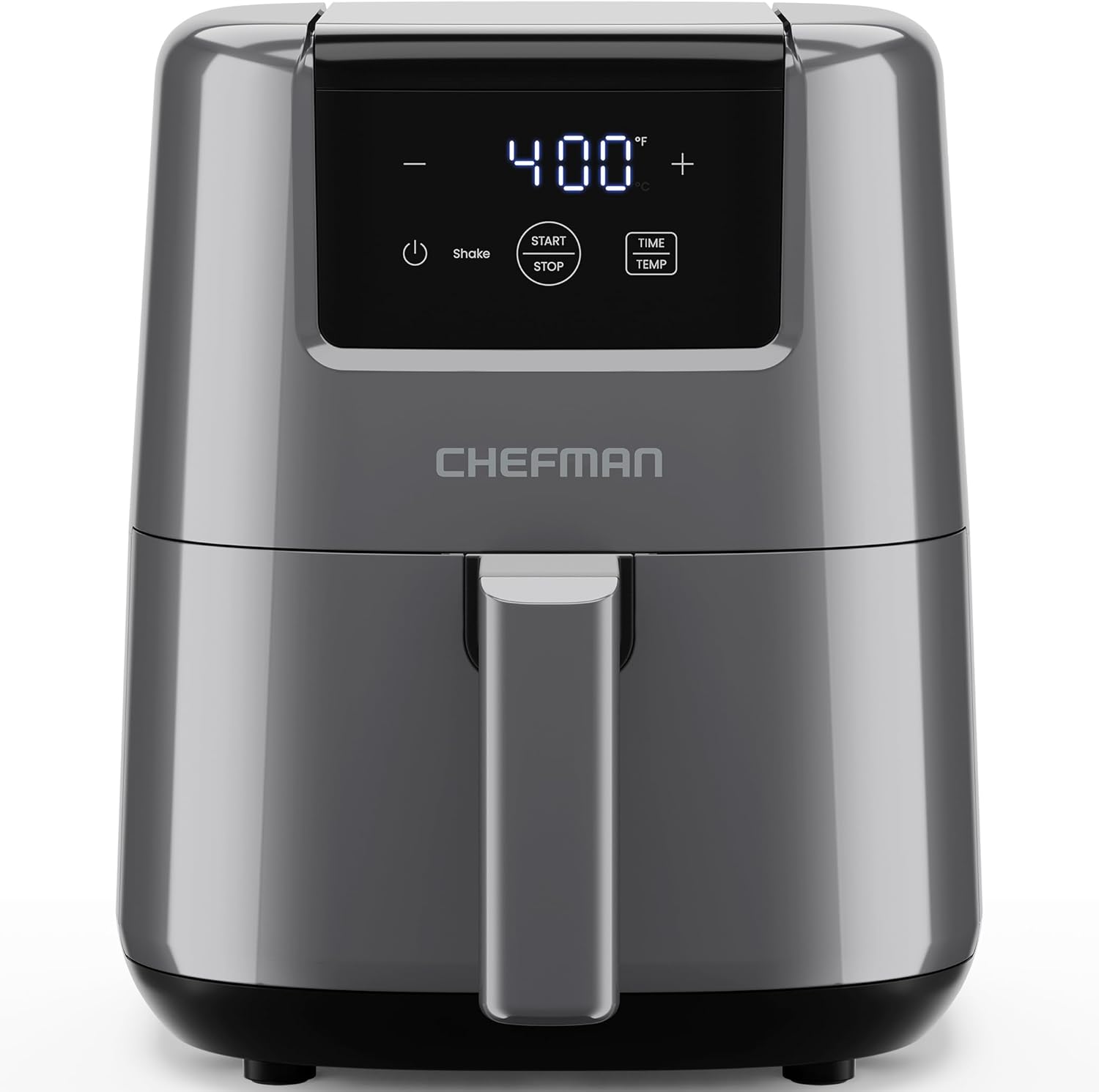 - FAST AND EASY: This small air fryer comes prepared for any culinary challenge. The capacitive touch screen display can customize your cooking time and temperature up to a maximum of 400°F! Cook food fast up to three times quicker than an oven.