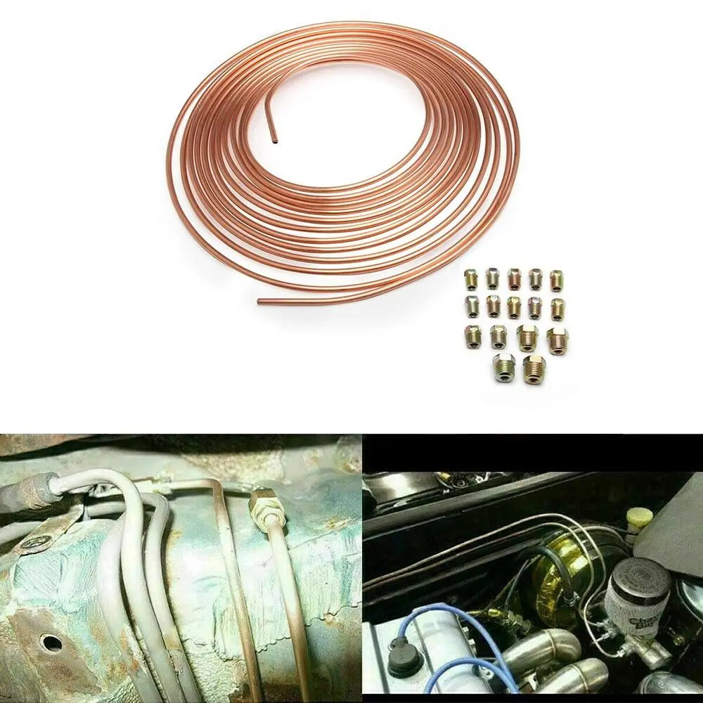25 Ft Roll x 3/16″ OD or 1/4″ OD Zinc plated steel brake line tubing with 16 assort fittings