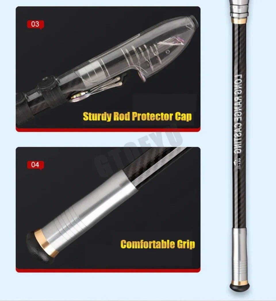 3.9M-4.5M Telescopic Fishing Rod Carbon Portable Spinning Fishing Pole for Boat Saltwater Freshwater Surfcasting Baitcasting Rod