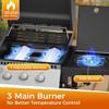 - [POWERFUL HEATING] The propane grill has 3 burners that can output 30,000 BTU per hour. Heating up quickly and easy cooking. This propane gas grill is perfect for backyard barbecues, patio parties, and other outdoor gatherings.