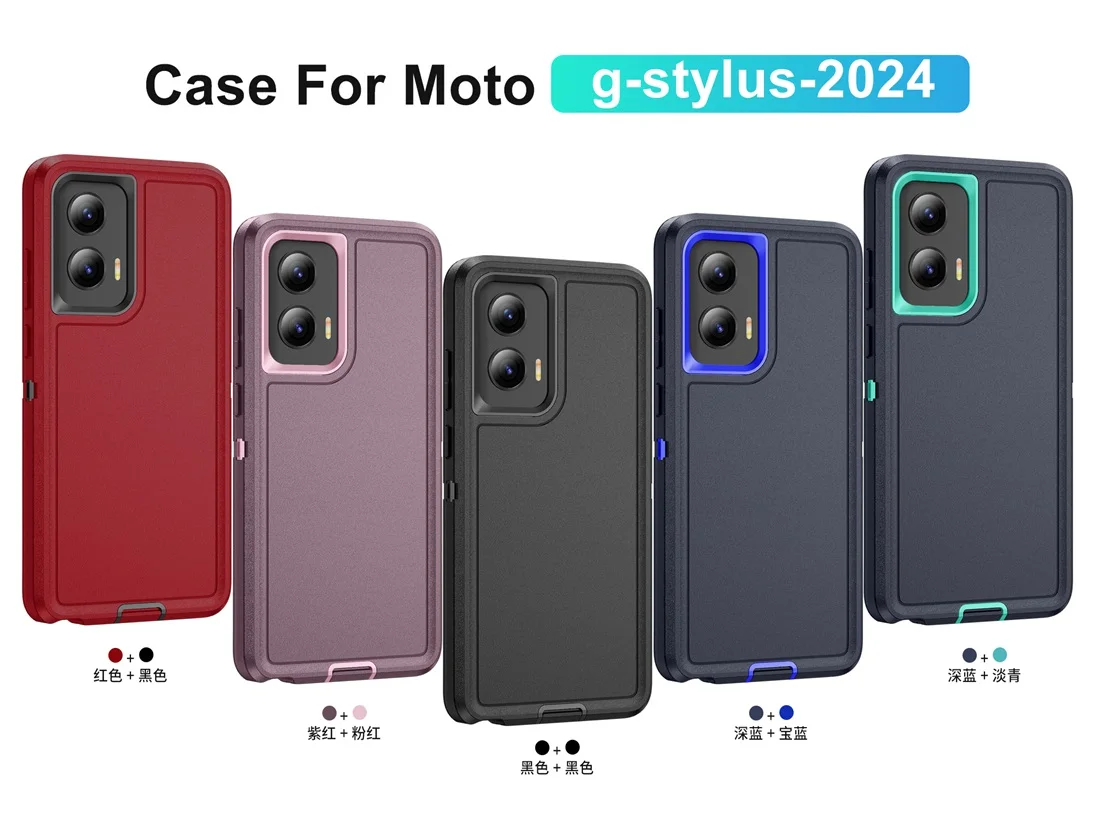 3 in 1 Slim Hybrid Hard PC Soft Silicone Rugged Rubber Bumper Heavy Duty Shockproof Full Body Protective Phone Cases Cover For Moto G Stylus 5G 2024[Not Fit Moto G 5G 2024]