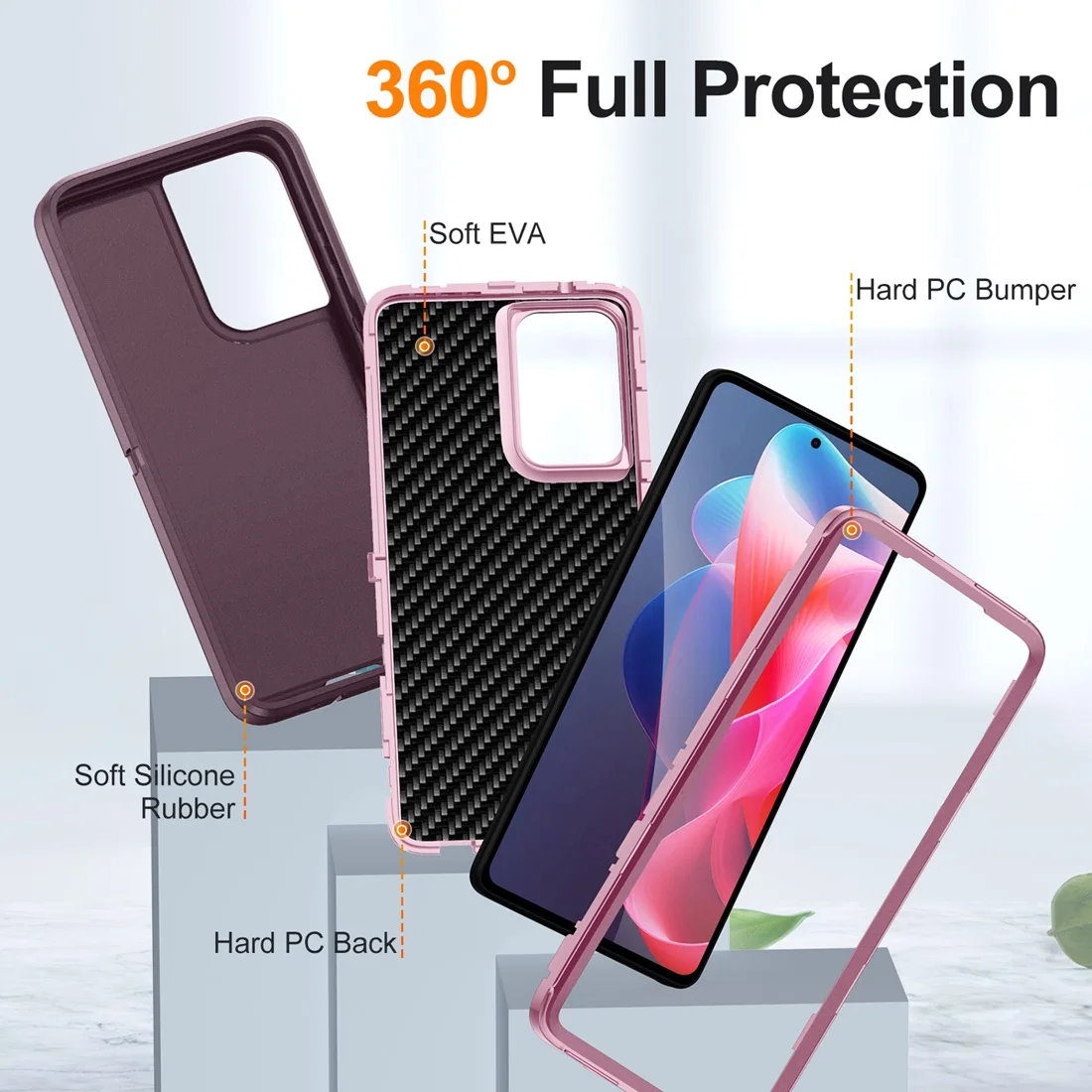 【Strong Protection】Built in 3 in 1 heavy duty shockproof design, protecting your precious phone against fingerprints, scratches and drop while maintaining its original beauty. And the four rubber corners provide good support pads to prevent falling.