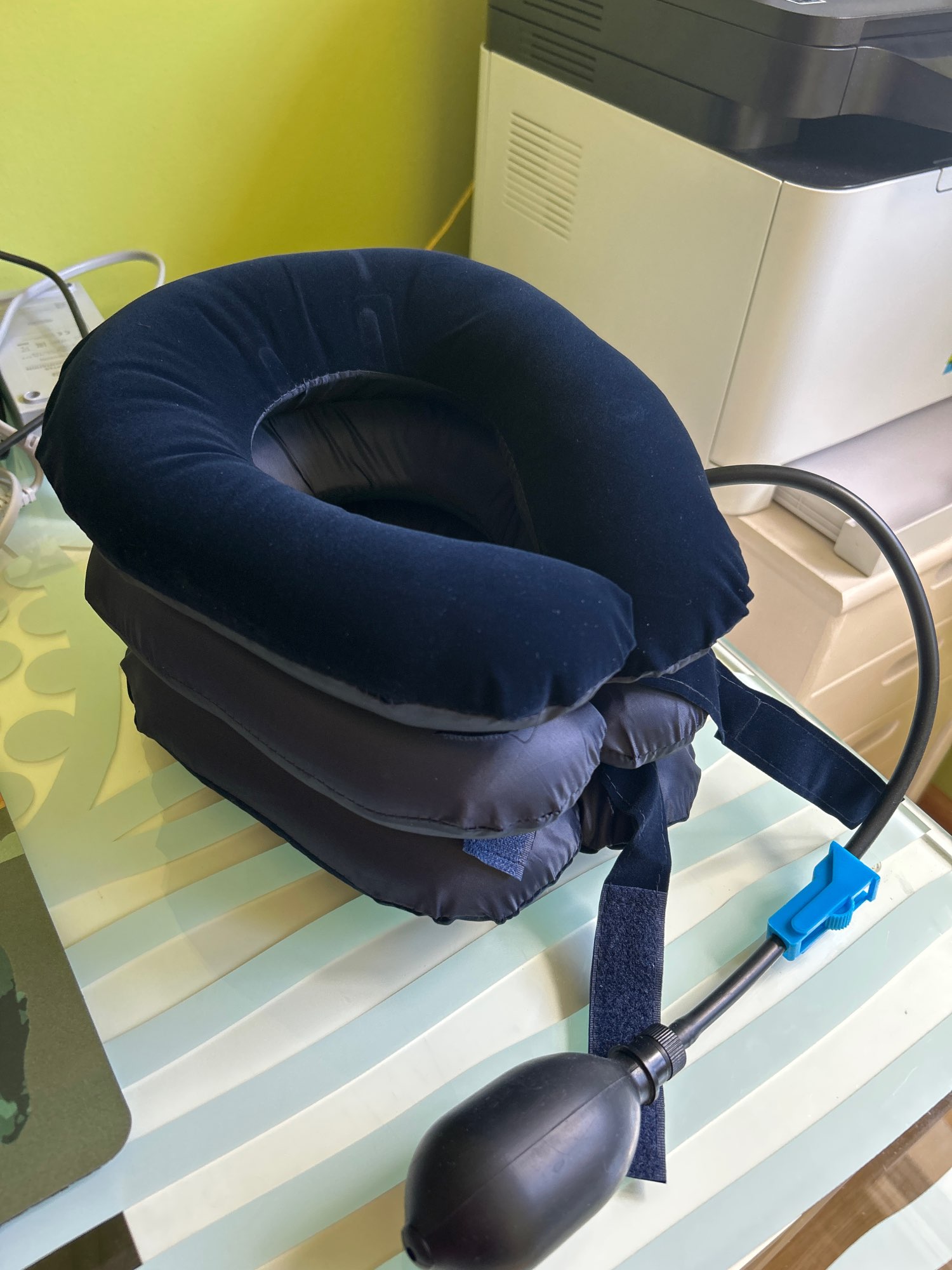 Cool thing, it's long-lasting to inflate with a pear, but it's convenient to adjust the Inflate The neck supports well, but it doesn't help me personally Will fit the thin neck as it is not super big