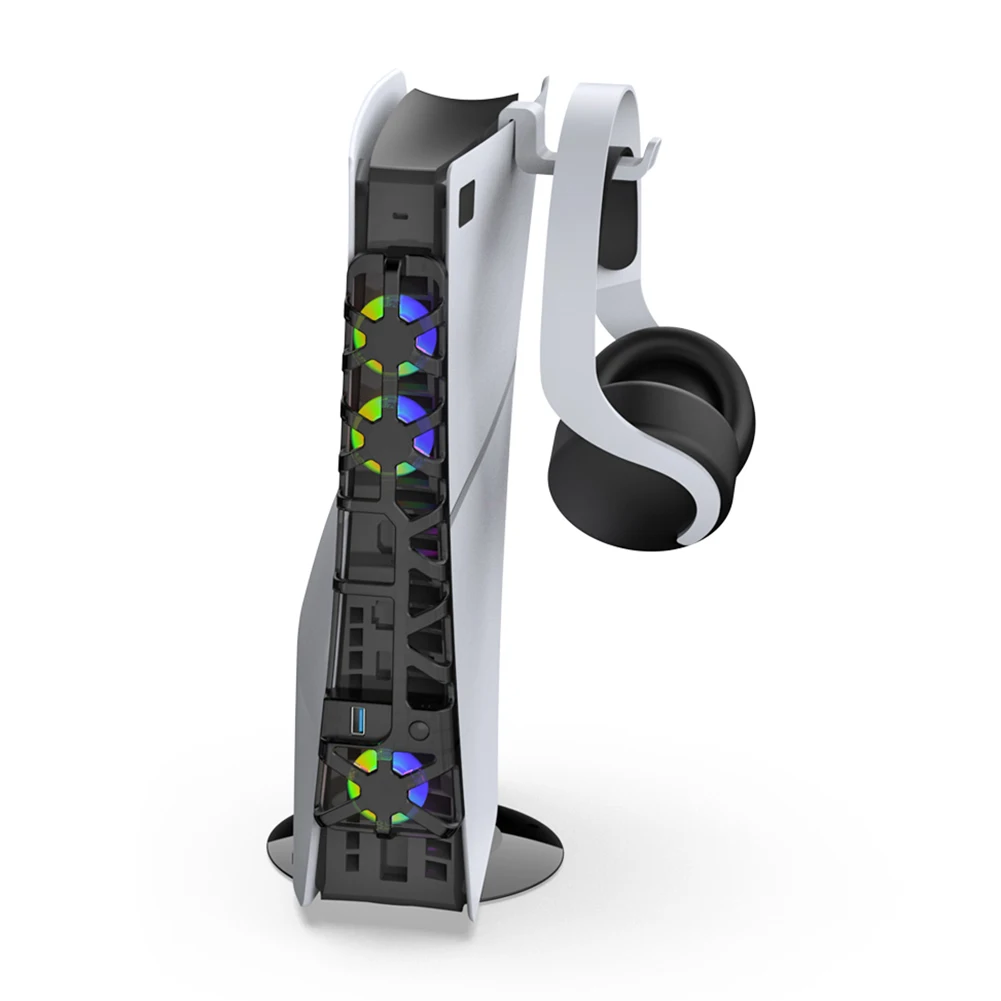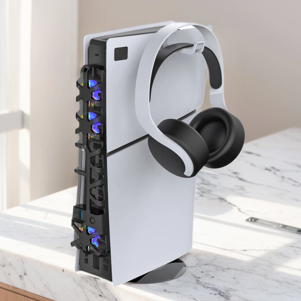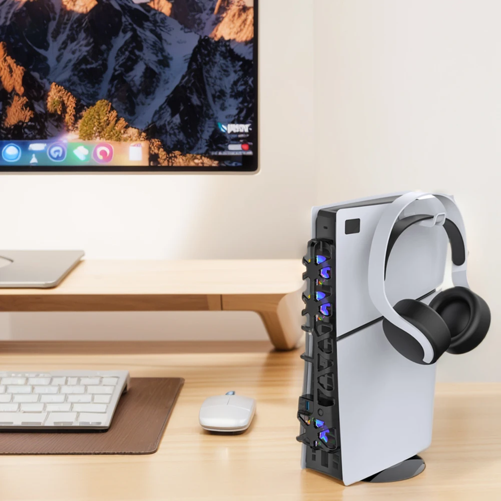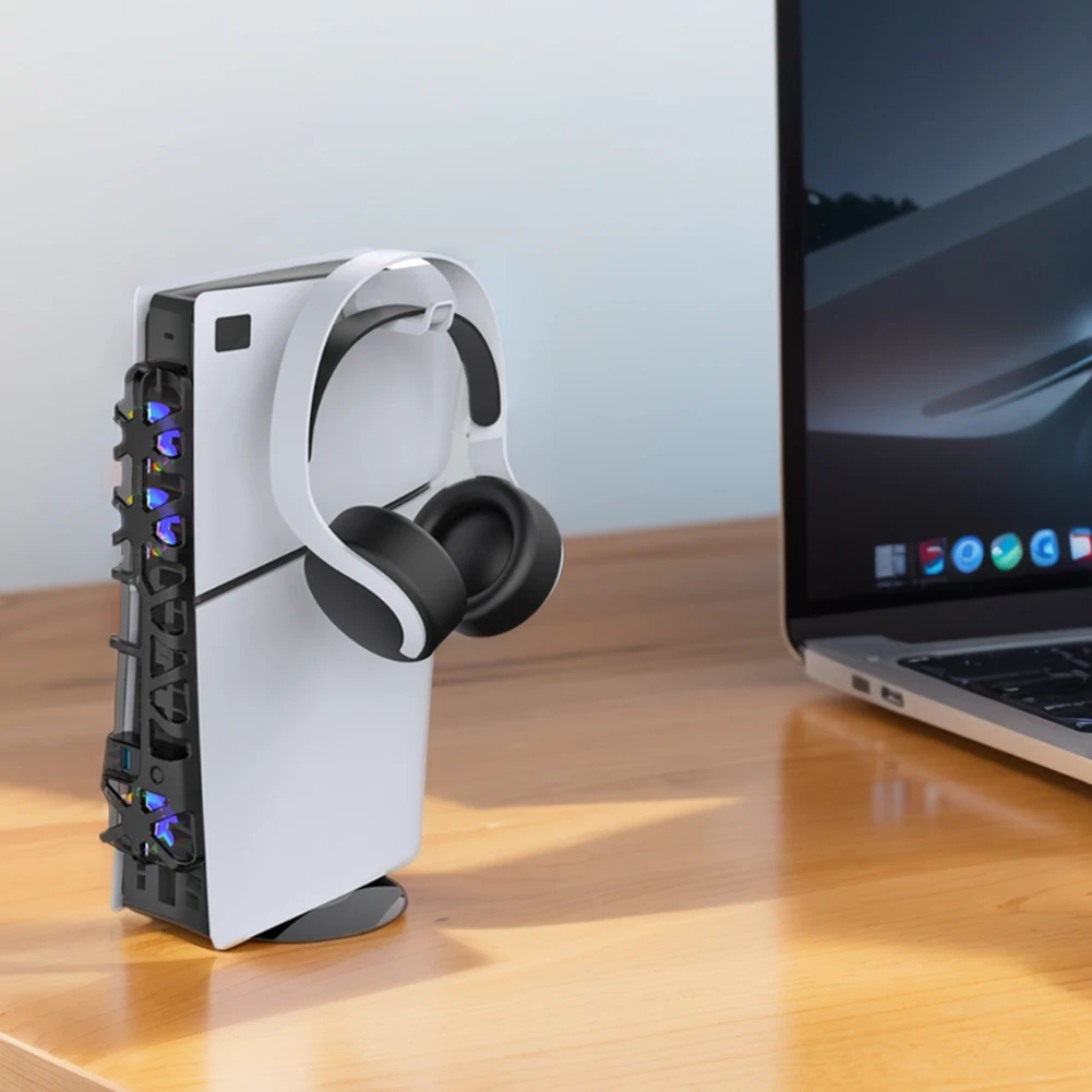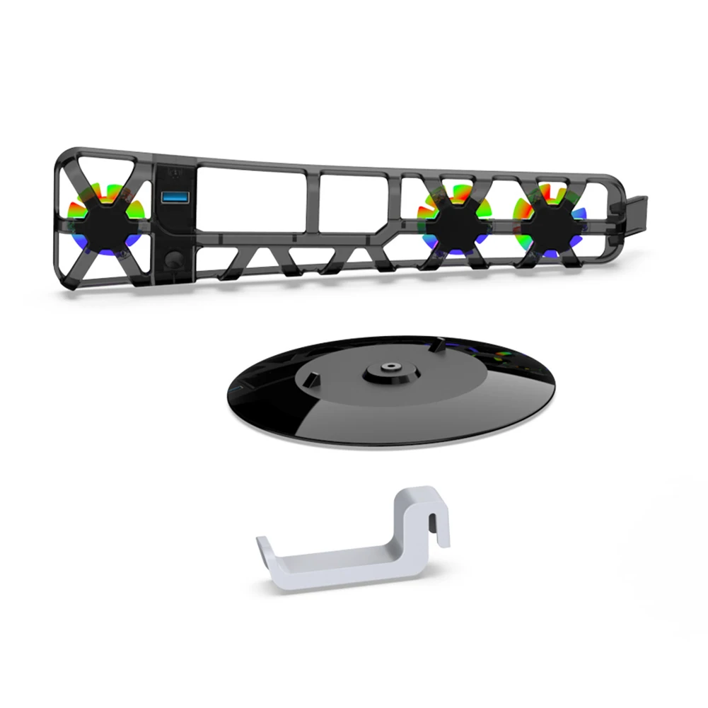 3 Pcs/Set Cooling Fan with Vertical Console Stand & Headphone Hanger for PS5 Slim Console External Cooler Fan Efficient Cooling System for Playstation 5 Slim Gaming Accessories