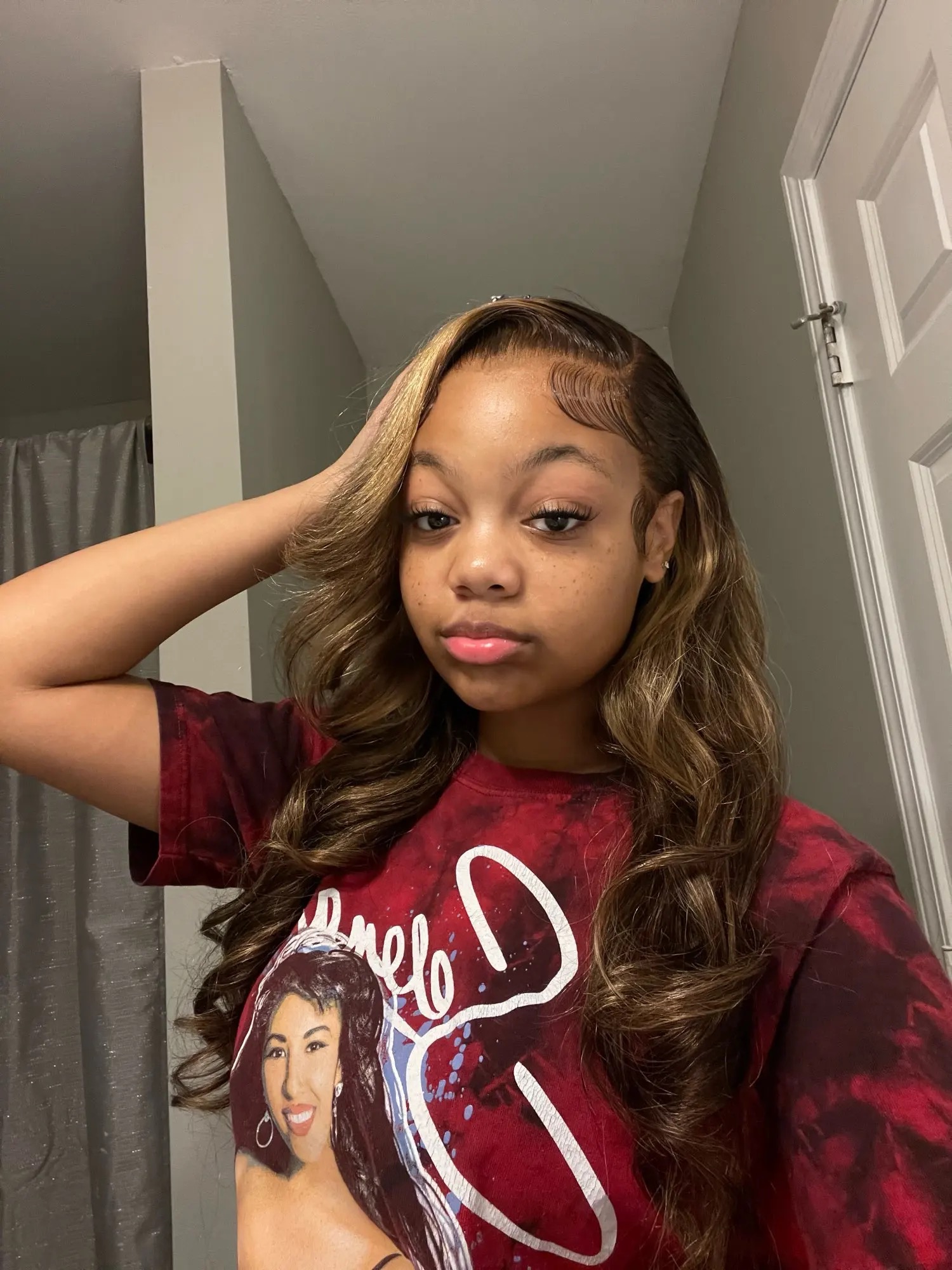This highlight brown hair is such a pretty color. Exactly what I want. The curvature is beautiful, knots are very small. I did not bleach at all and only did minimal plucking. I definitely recommend this hair, it's a 10/10!
