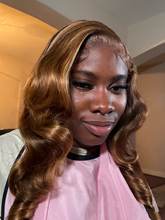 I am very satisfied with this wig!!! First of all, it's 100% real human hair, which is very soft and smooth to the touch, just like my own hair, and the hair is not tangled, no smell, the thickness is very full. Secondly, the hair is very shiny, you can see in the photo, that I wear the effect!