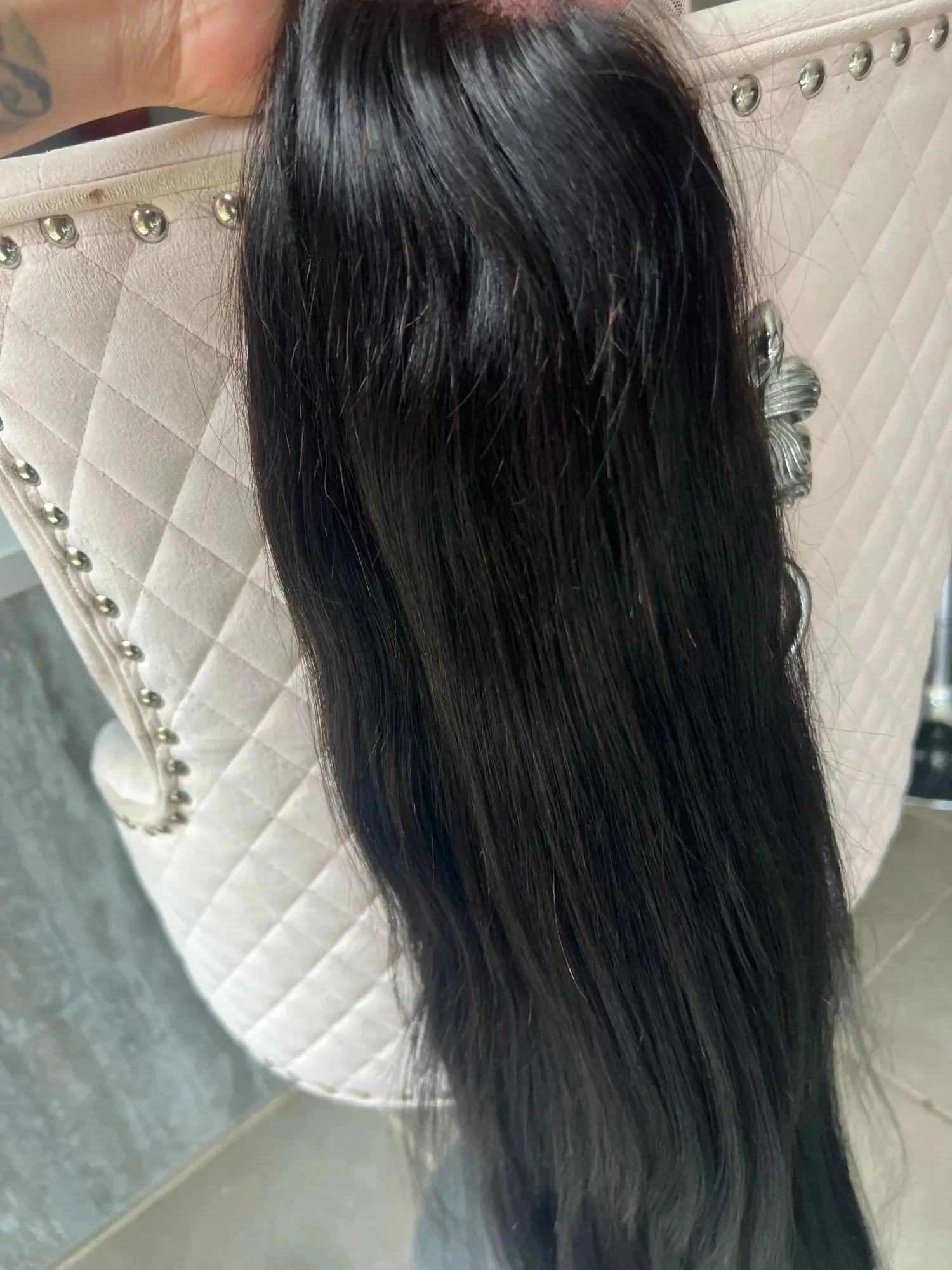 I was so happy to get my wig as soon as I got off work it was my first time buying a wig the hair was so soft you could tell it was real,This wig is absolutely everything it should be, true length, the knot is nicely bleached, has perfect volume and thickness, it rarely rarely falls off, this is my second time ordering this wig and I think I like it more than the first time, order it!I was very satisfied with the purchase.
