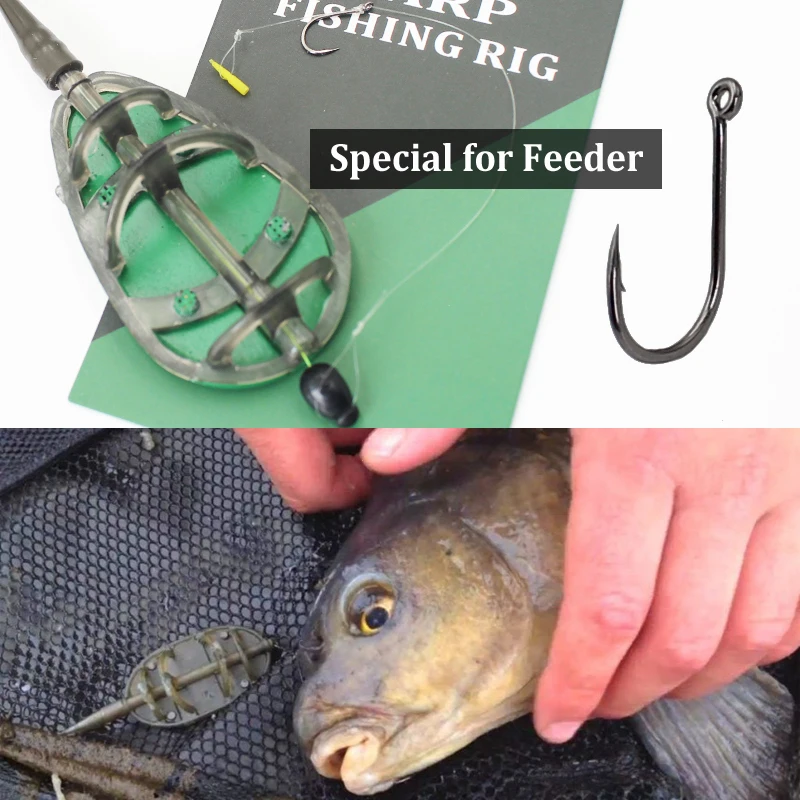 This Feeder Fishing hook has been designed for feeder fishing to catch small fish like crucain carp,dace , carp less than 1.5 KG etc .The design of light weight ,right bent hook point and circle hook concept will increase most of possiblity to hook fish.