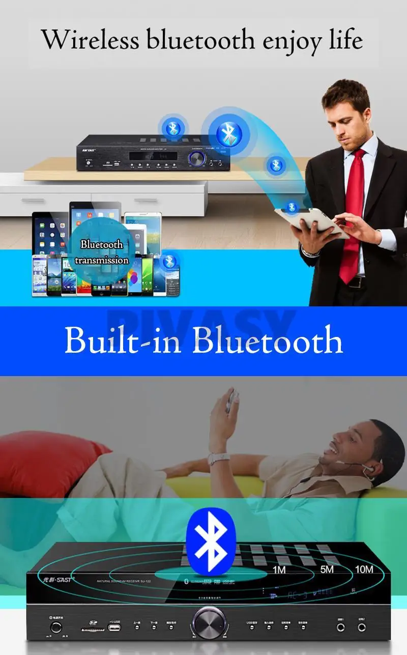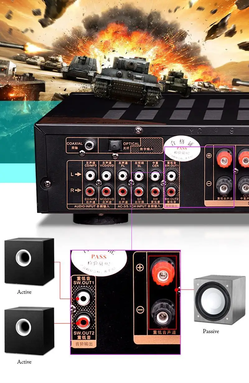 300W/550W High Power Fever Hifi Amplifier Bluetooth 5.0 Surround Sound Subwoofer 5.1 Support 4-16Ω speaker Stage Wedding KTV Home Use