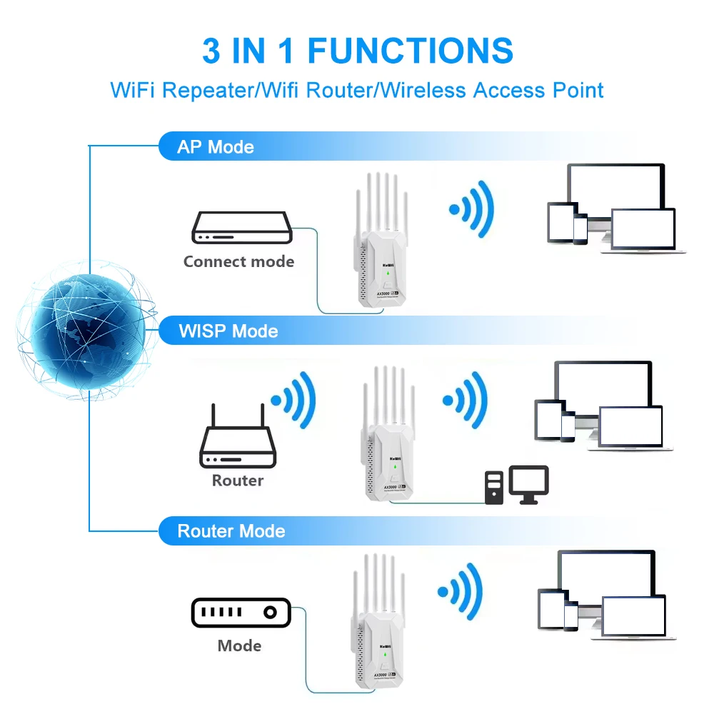 1. 3000Mbps high-speed dual band wireless wi-fi transmission rate;