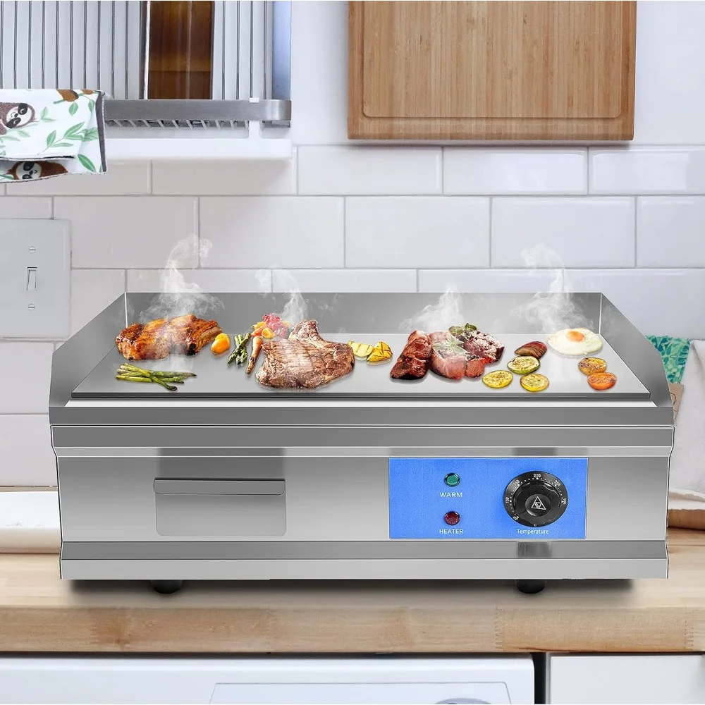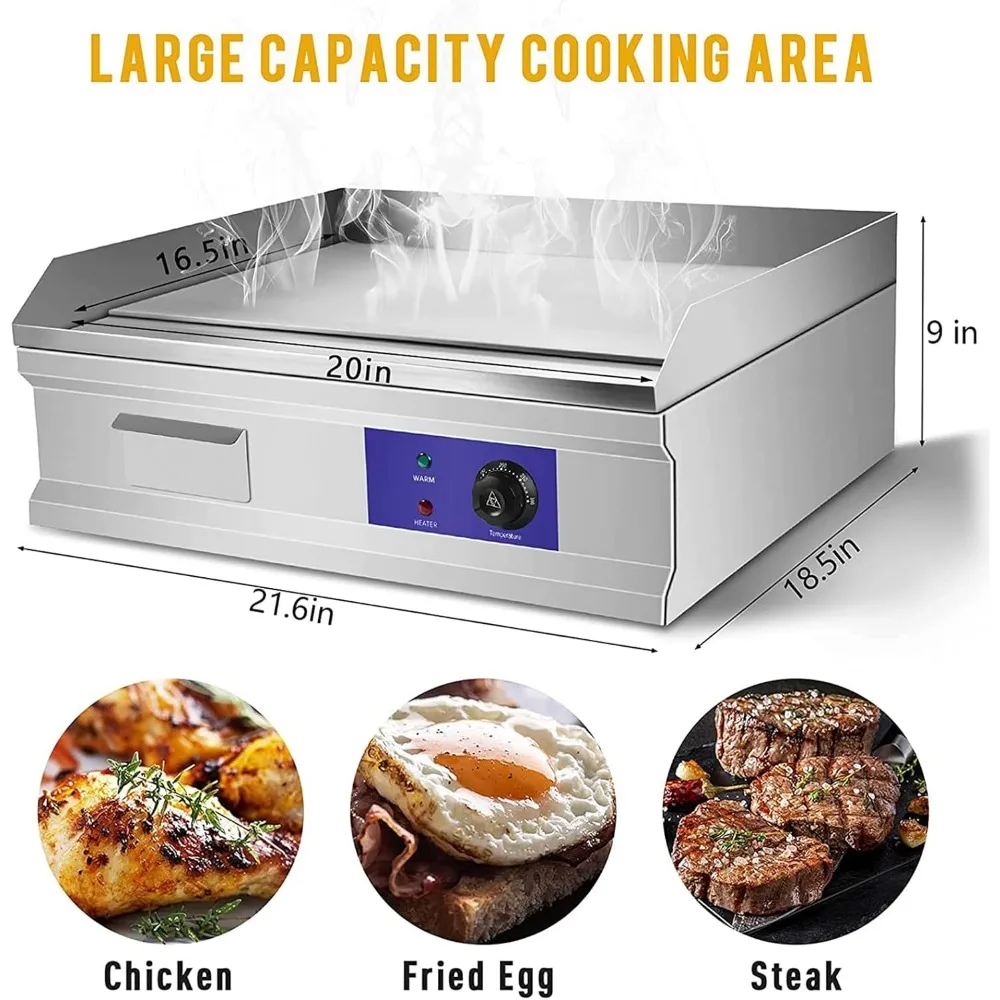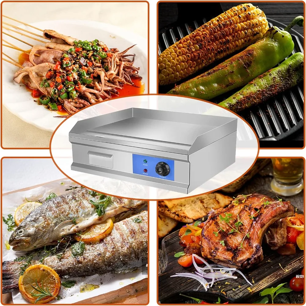 - 【SUITABLE SCENE】Stainless steel electric commercial griddle grill is suitable for domestic and commercial use, and the evenly distributed electric heating route can quickly and evenly heat the ingredients and provide a large cooking area. Suitable for cooking vegetables, meat, grilled cheese, scrambled eggs, etc.