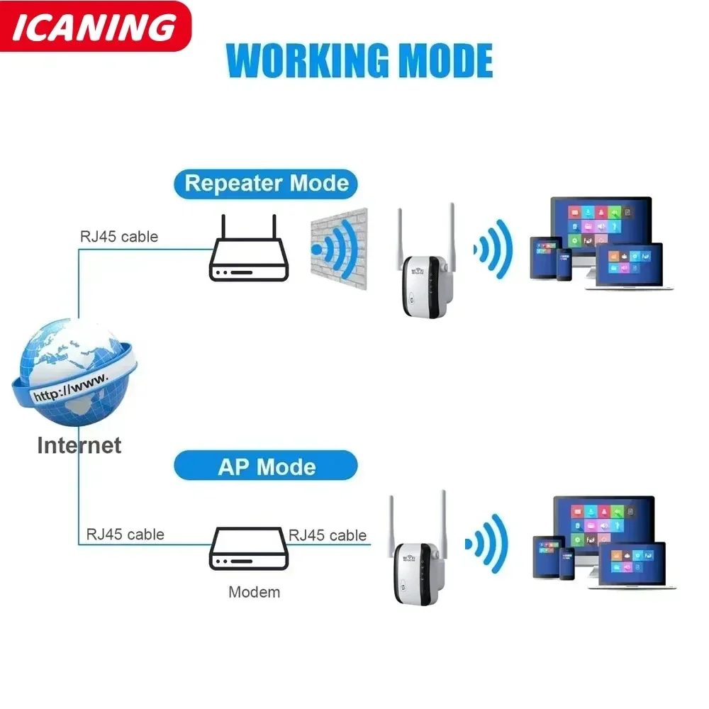①Repeater mode can easily expand your wifi range without cables, which is more convenient.
