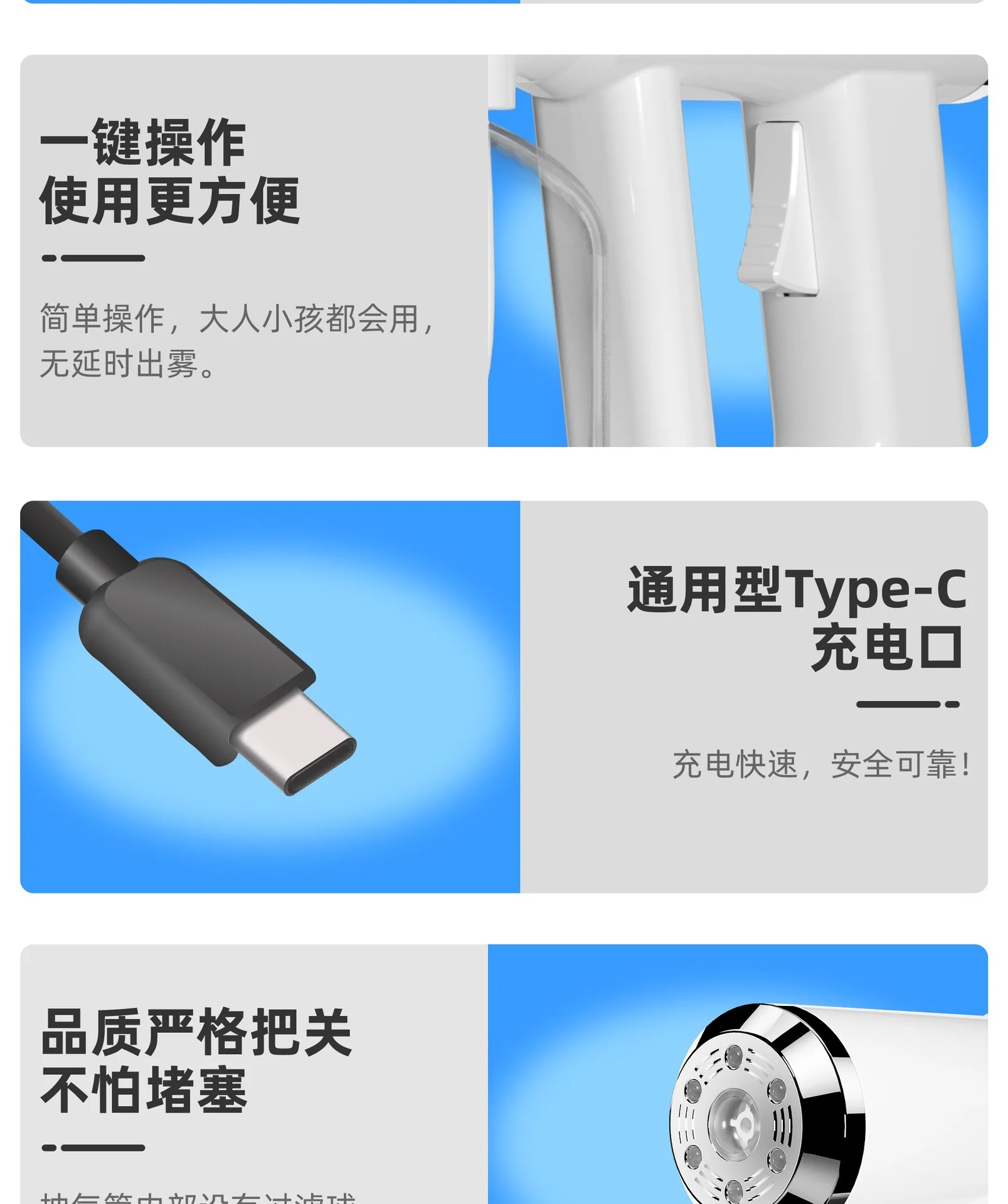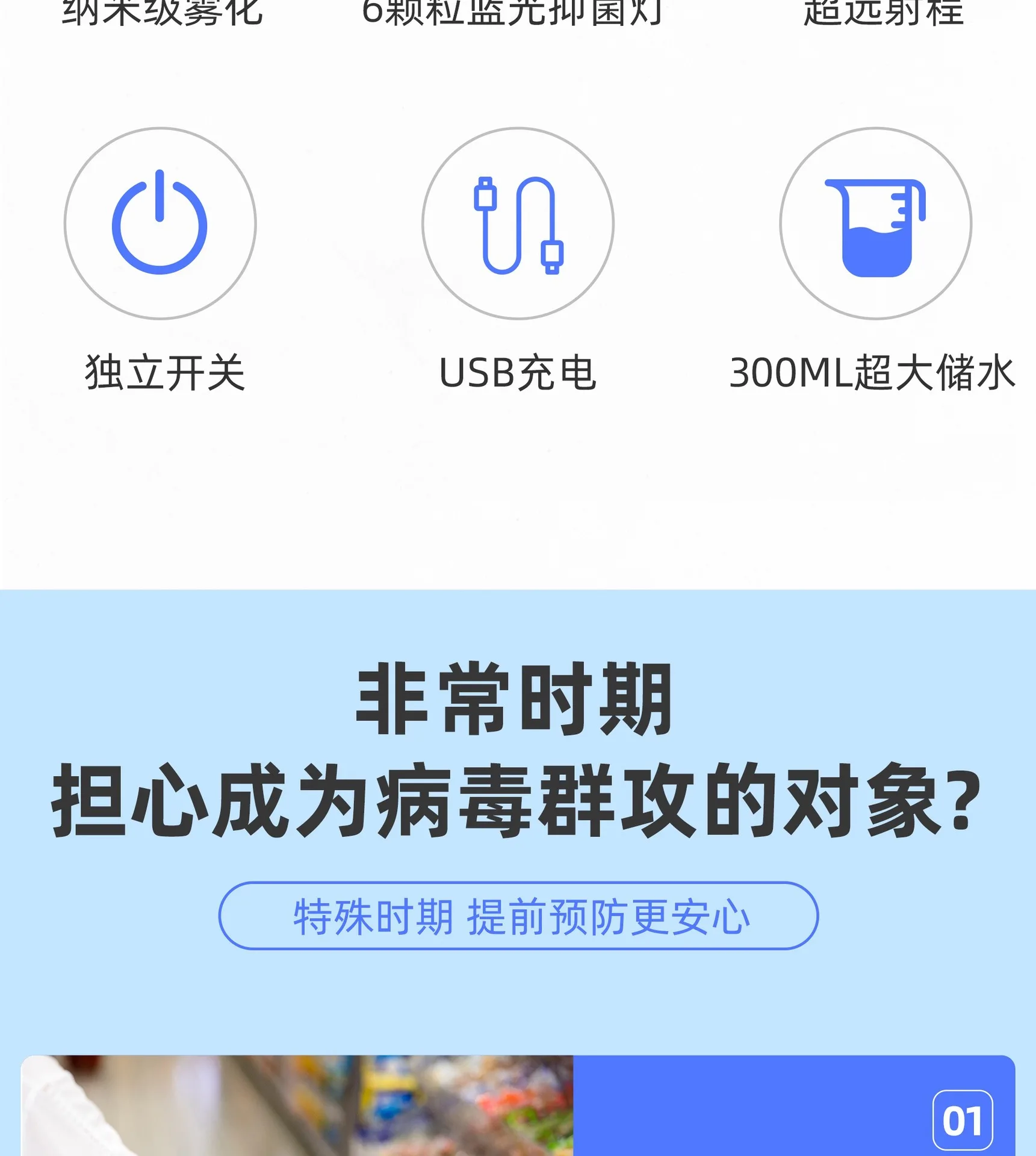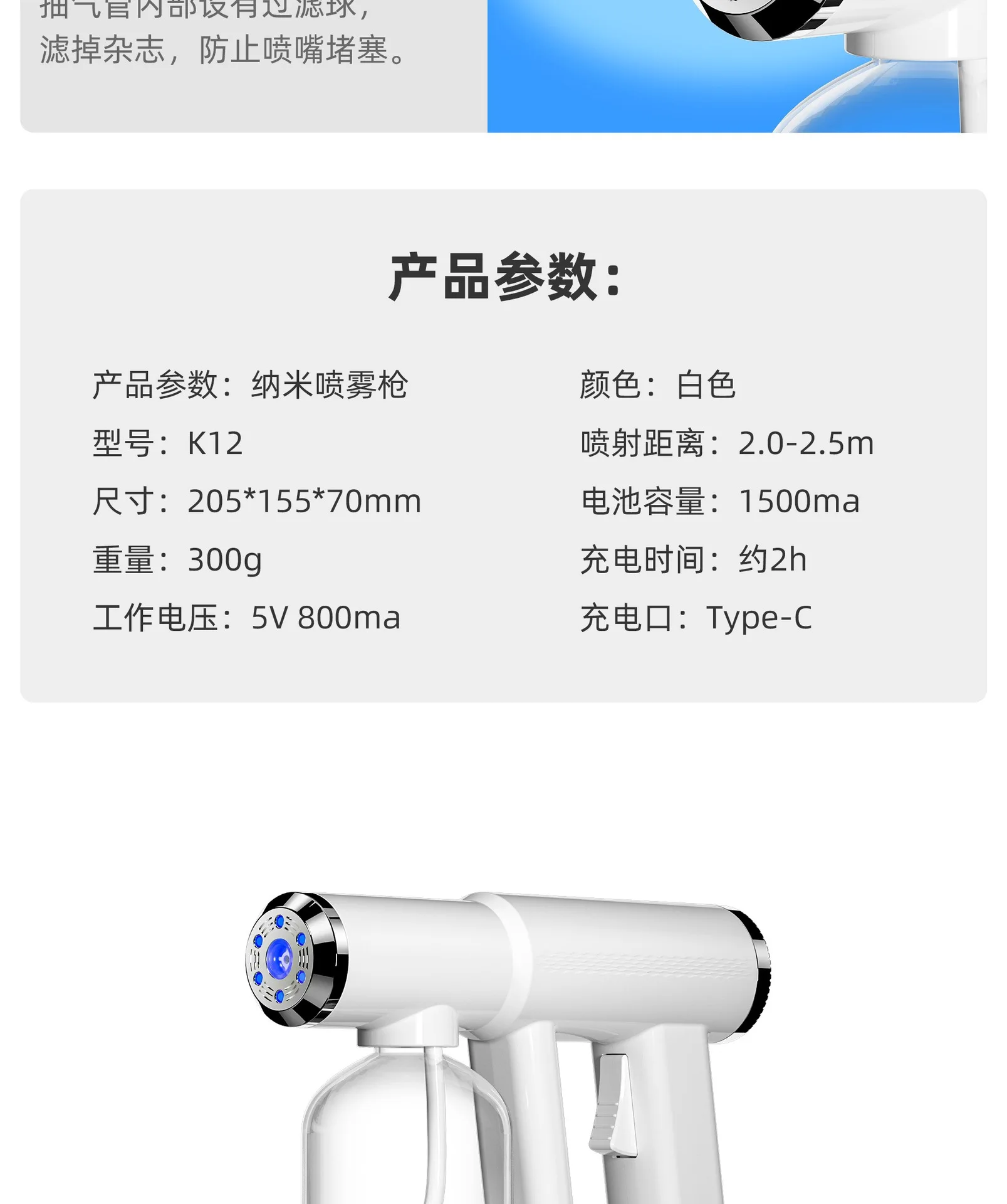 300ml Blue Light Nano Hair Sprayer USB Rechargeable Wireless Steam Gun Barber Salon Hair Styling Grooming Garden Disinfection