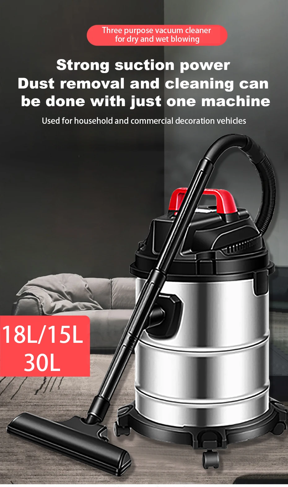 30L Multifunctional High-power Vacuum Cleaner Wet Dry Dual-use Small Large Suction Cleaner for Home Car Commercial Industry Wash