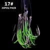 30pcs/lot Night Fishing Hook Glow In Dark String Hooks 16-24# Luminous Crank Nake Single Fishhook Freshwater & Saltwater