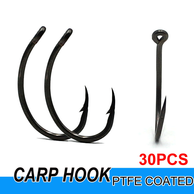 30PCSPTFECoating Carp Fishing Hook Jig Head Yn Carp Hooks High Carbon Steel Curve Shank Barbed Fishhook Chod Hair Rigs Hooks