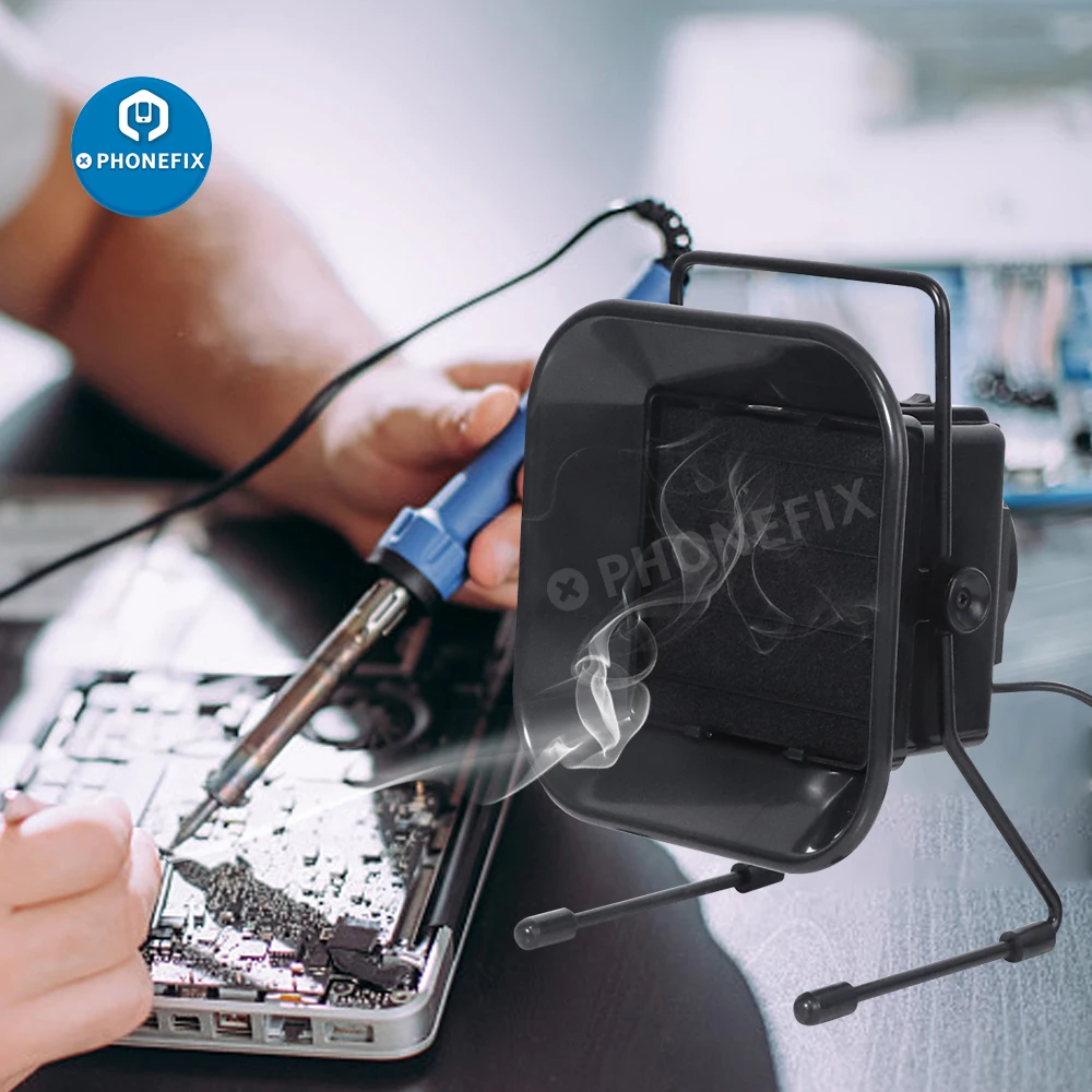 220V Portable Solder Smoke Absorber ESD Fume Extractor For Soldering Iron Work Soldering Smoking Fan with Activated Carbon Filter Sponge