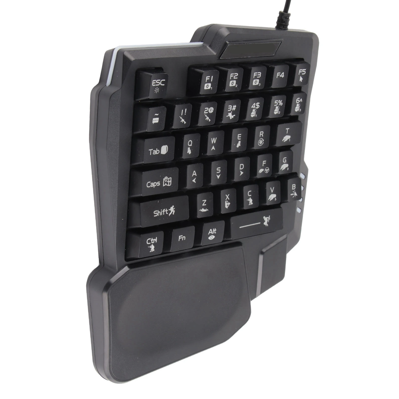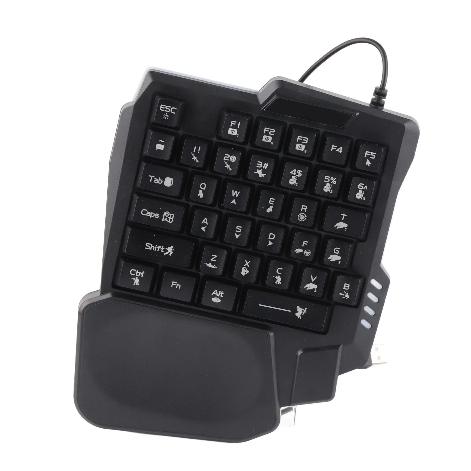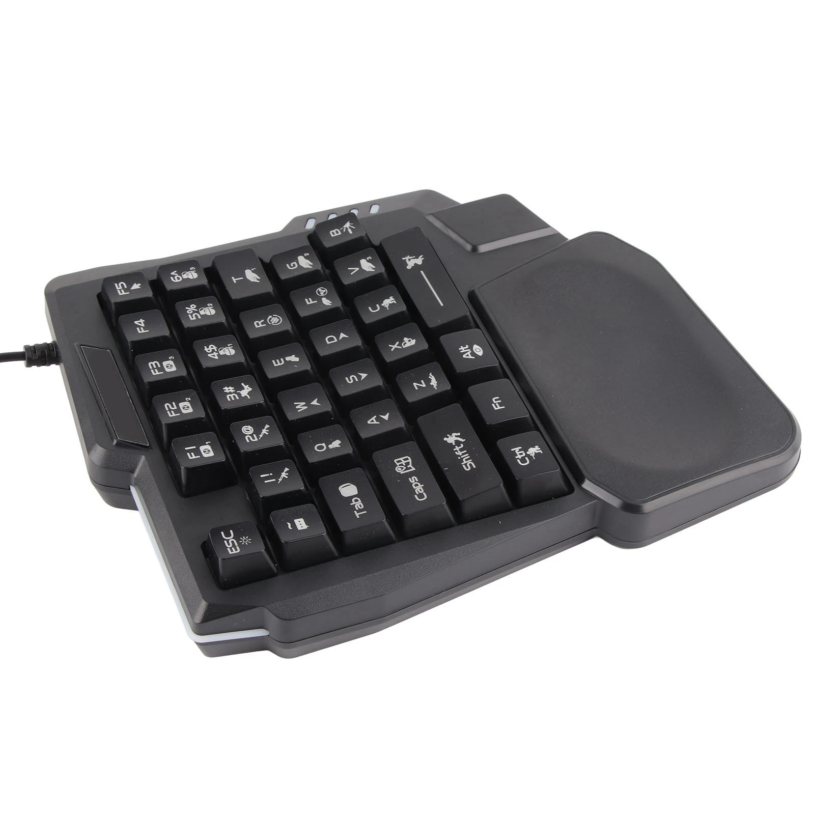 One Handed Gaming Keyboard 35 Keys Waterproof Wide Palm Rest Black Single Handed Keyboard for Computer Mobile Games