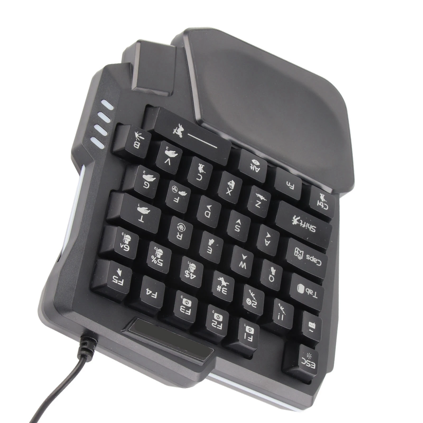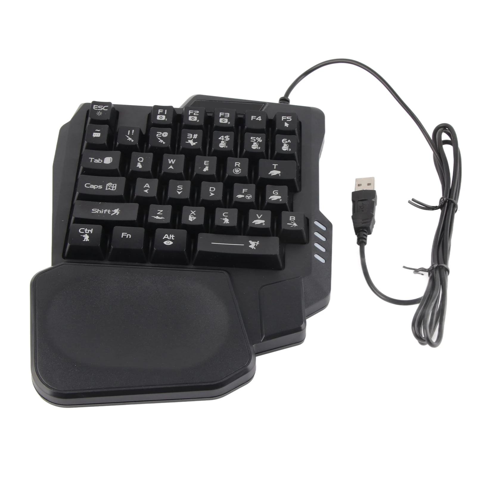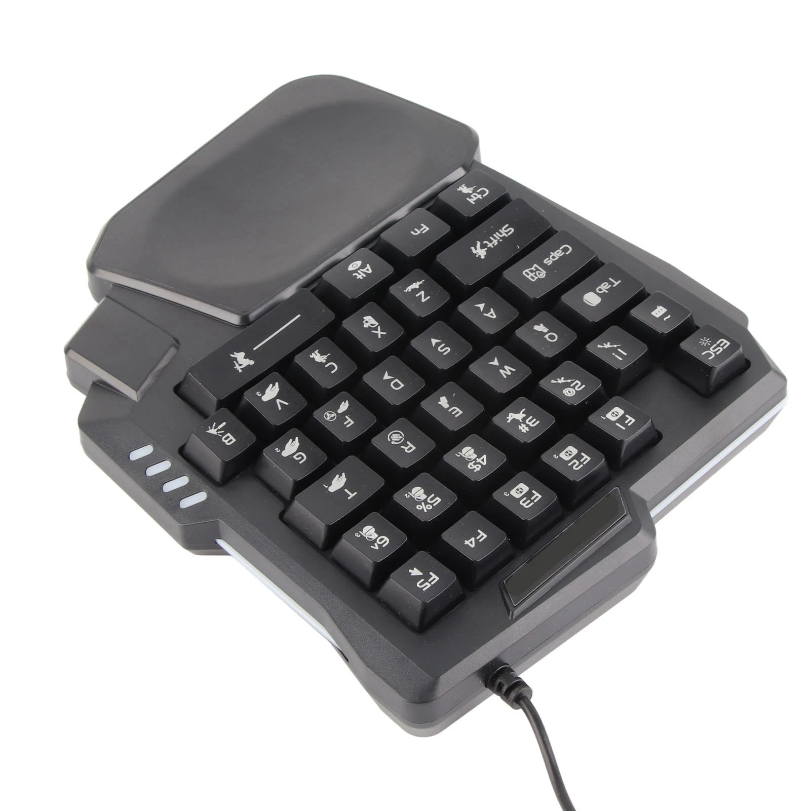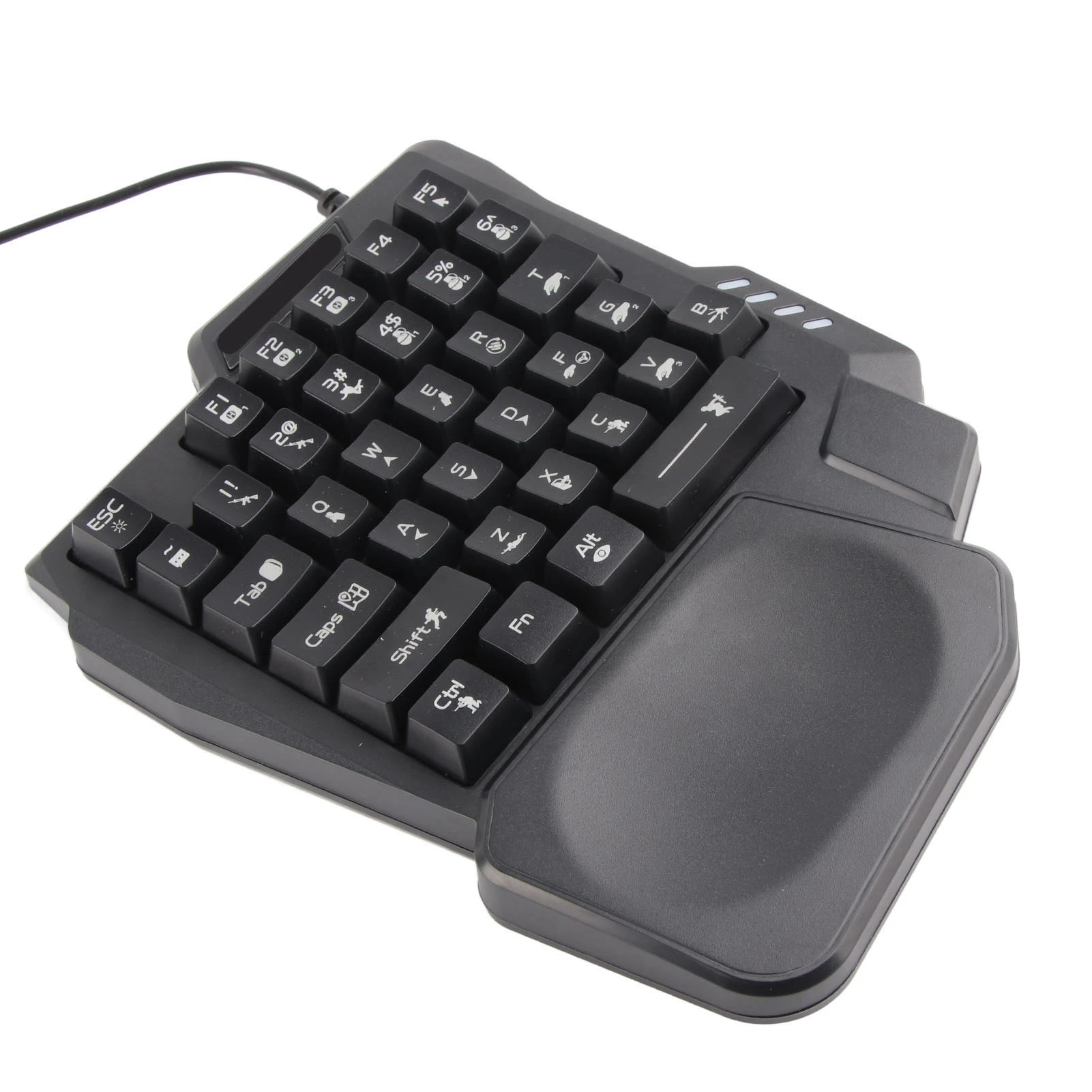 One Handed Gaming Keyboard 35 Keys Waterproof Wide Palm Rest Black Single Handed Keyboard for Computer Mobile Games