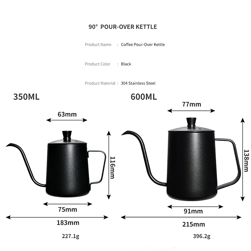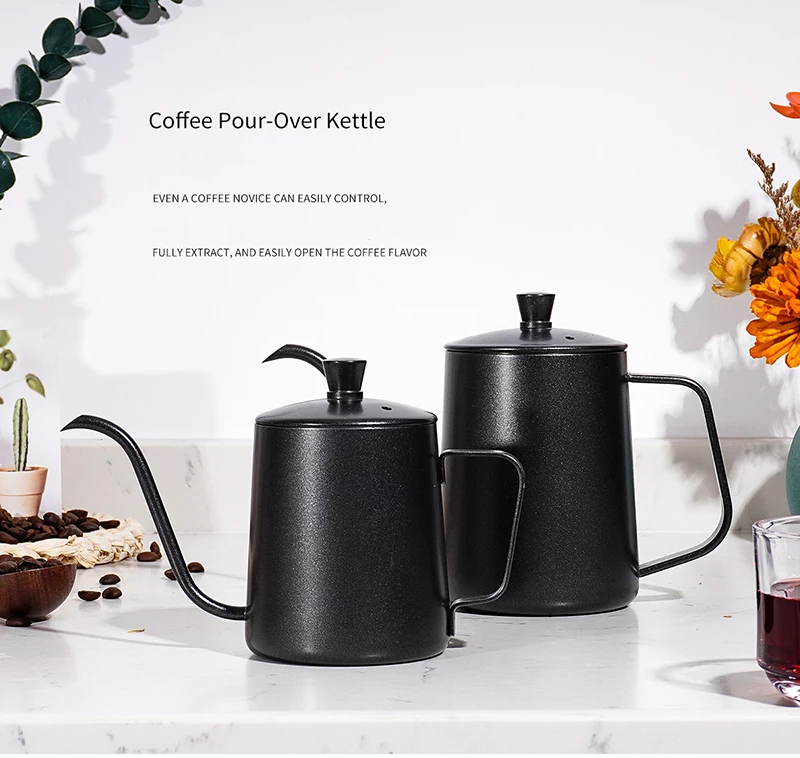 350ml 600ml Drip Kettle Coffee Tea Pot Non-stick Coating Food Grade Stainless Steel Gooseneck Drip Kettle Swan Neck Thin Mouth