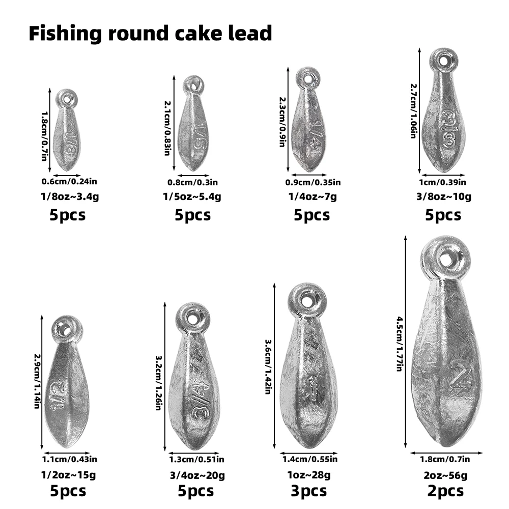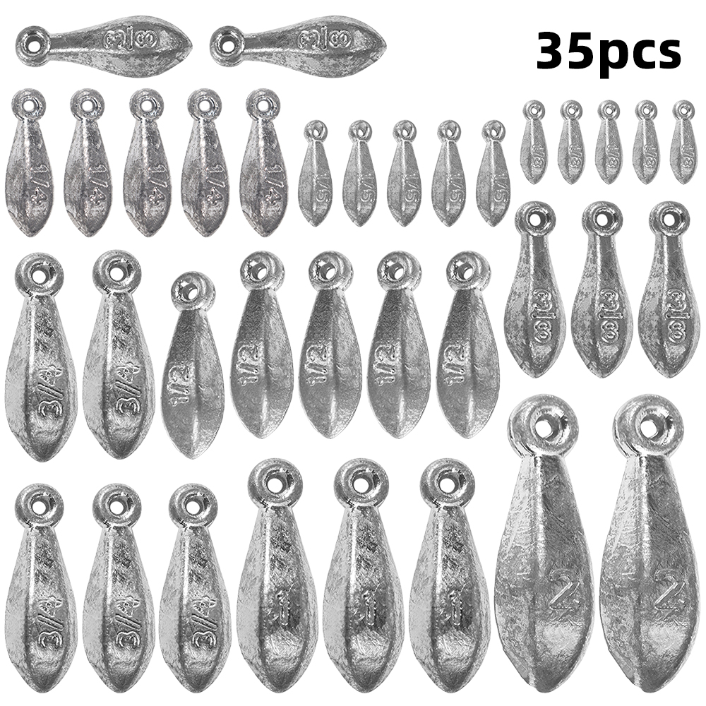 35pcs Fishing Weights Sinkers Assorted Set, Hexagonal Lead Weight with Ring for Sea Fishing, Drop Shot for Rod Casting