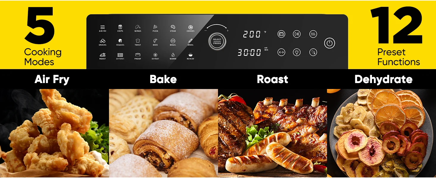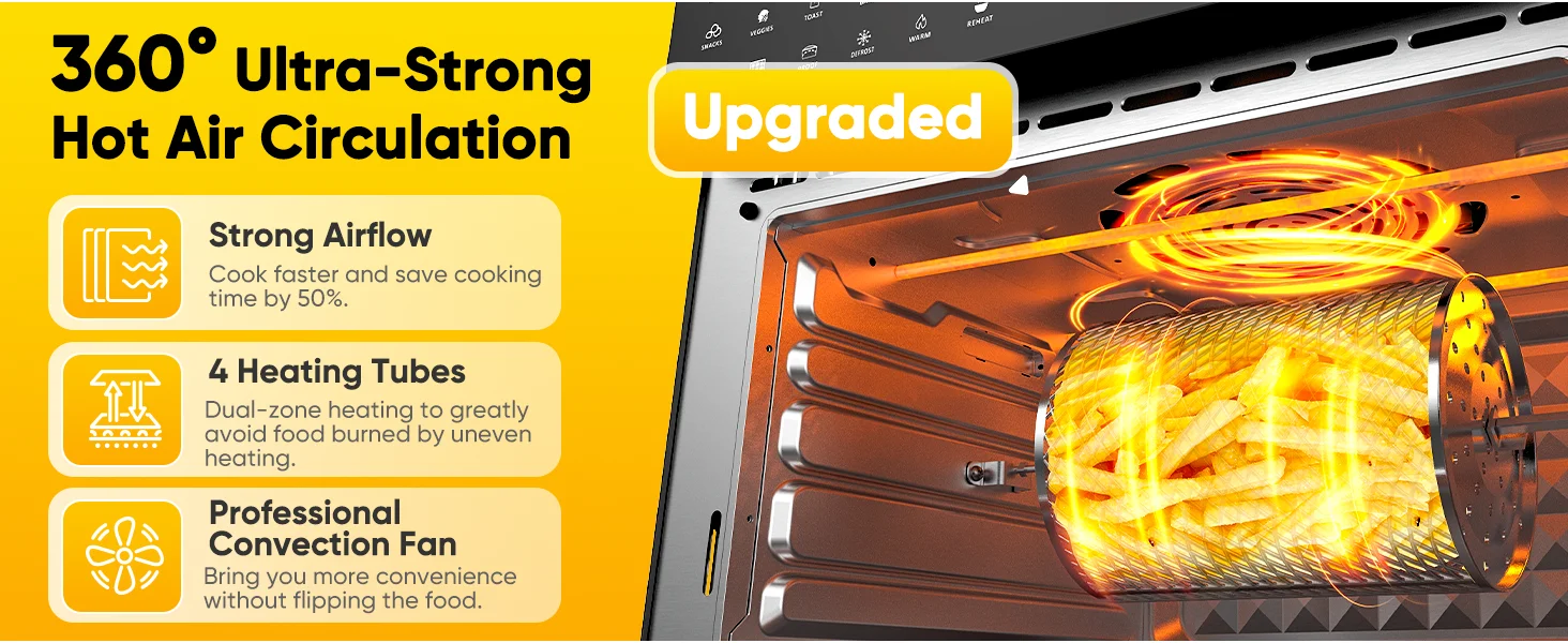 360°Hot Air Circulation for Healthier Food, 1800W Preset Dual Cook
