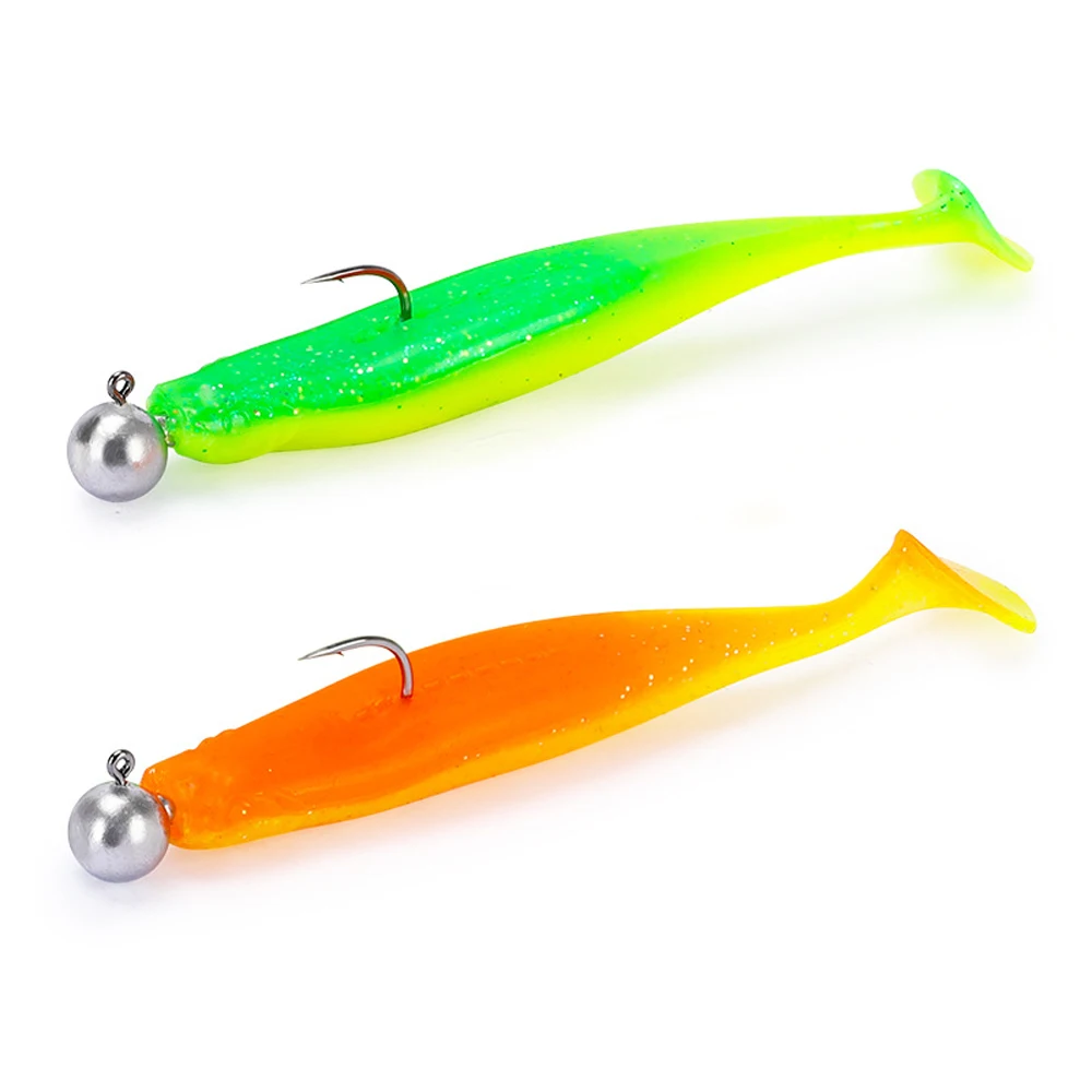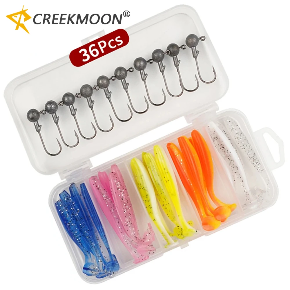 36Pcs/box Jig Head Hook Soft Lure Kit 6cm Soft Fishing Lure 3.5g Jigging Heads Fishing Hooks Set with Fishing Tackle Box Swivel