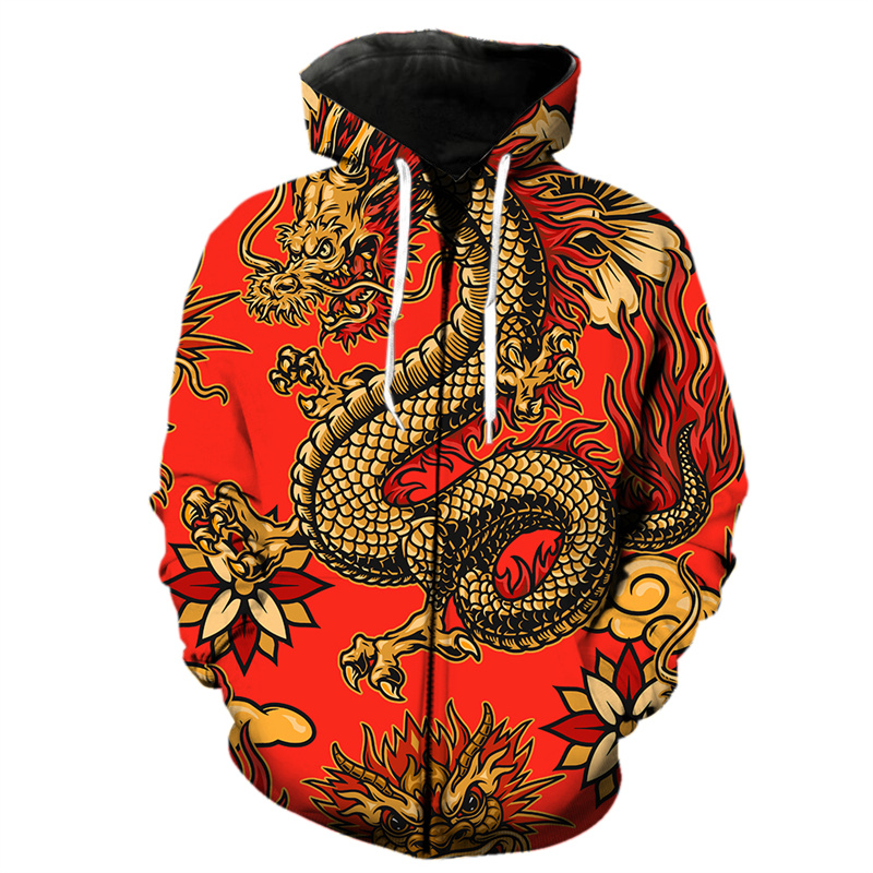 3D Printed Orient Dragon Cat Zipper Hoodie For Men Fashion Long Sleeve Tops Sweatshirt Kids Cool Streetwear Harajuku Hoodies