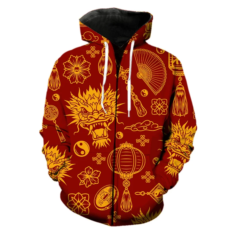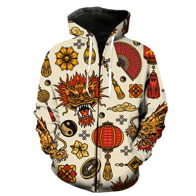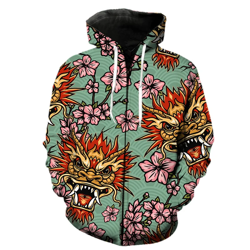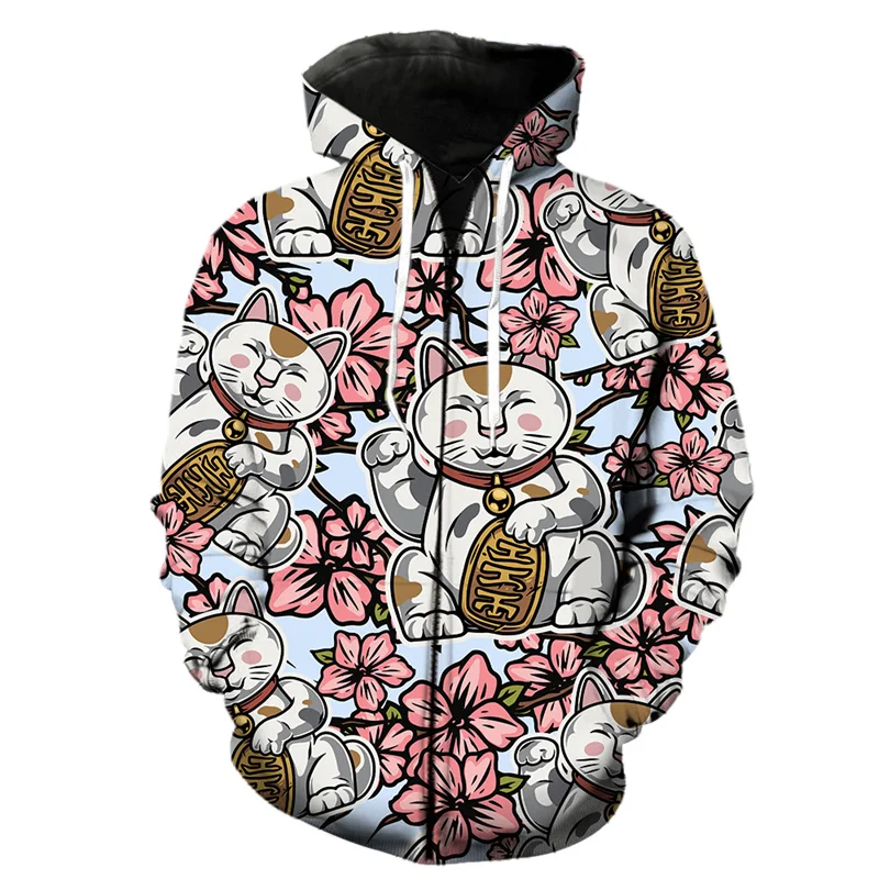 3D Printed Orient Dragon Cat Zipper Hoodie For Men Fashion Long Sleeve Tops Sweatshirt Kids Cool Streetwear Harajuku Hoodies