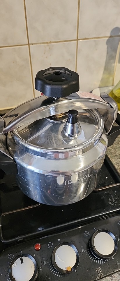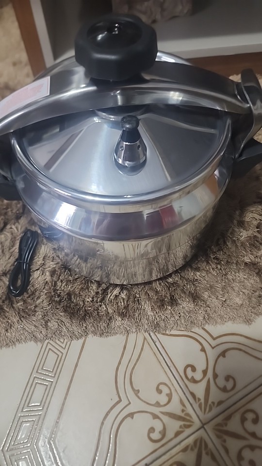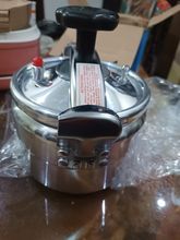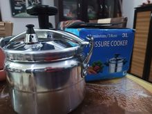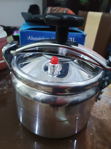 Very Good Product same product as shown in app, Aluminium alloys pressure Cooker, I have no Idea about size, cooker size very small If any one want to cook 1 kg item this is suitable, but I recommend 5/7 or 9 Liter buying for this Item.