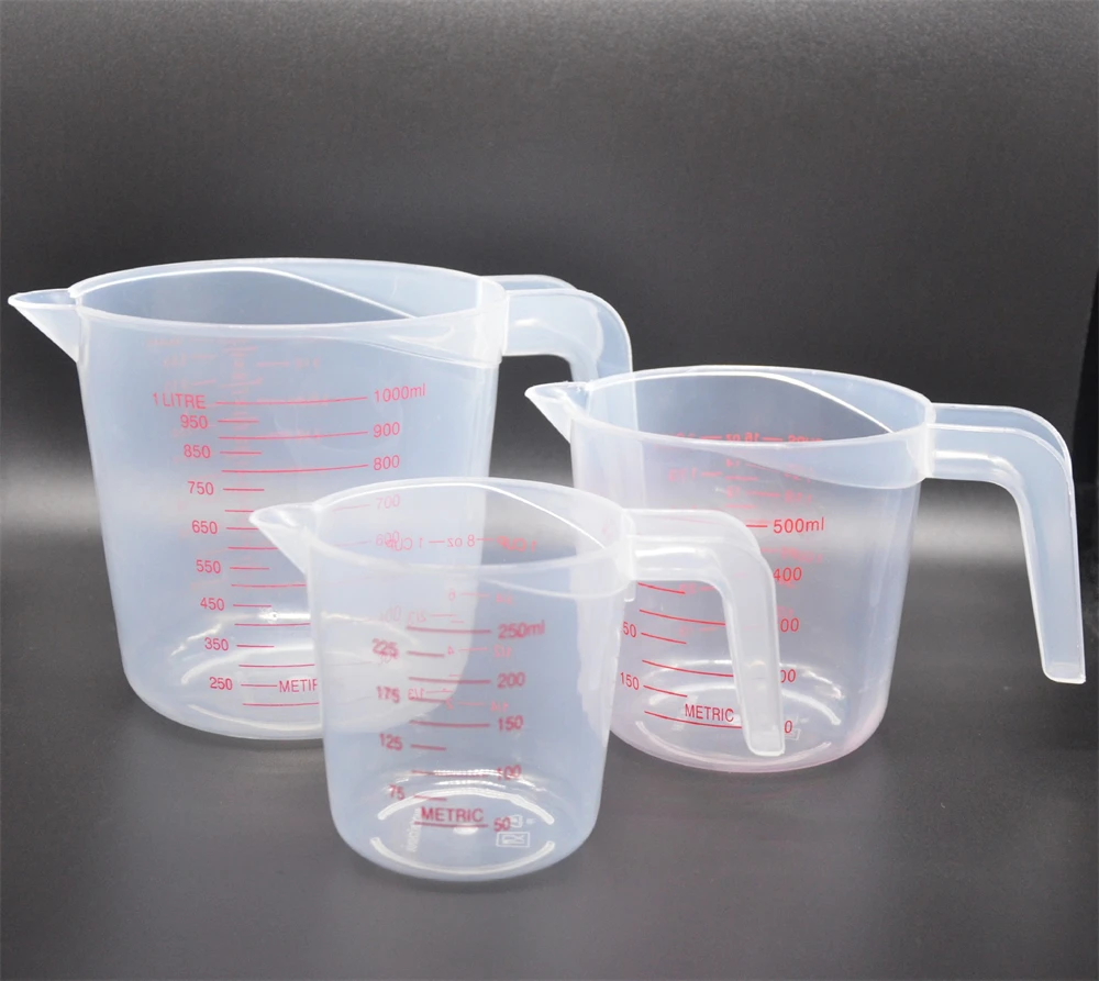 3pcs 250/500/1000ml Baking Liquid Measuring Cups with Brush PVC Scale Cup Plastic Measuring Volume Beaker Kitchen Baking Tools