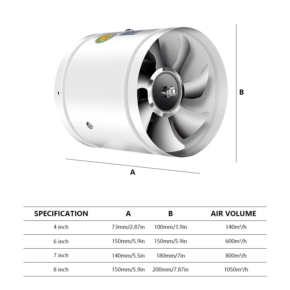 4/6/7/8 Air Ventilator Metal Pipe Ventilation Exhaust Fan High Quality Blades for Restaurants Kitchens Supermarkets and More