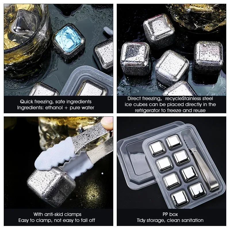 CHILL WITHOUT DILUTION – Made from food-grade 18/8(304) stainless steel material, these reusable ice cubes will retain the cold and the flavor of your drinks, while never dilute, rust or corrode them;