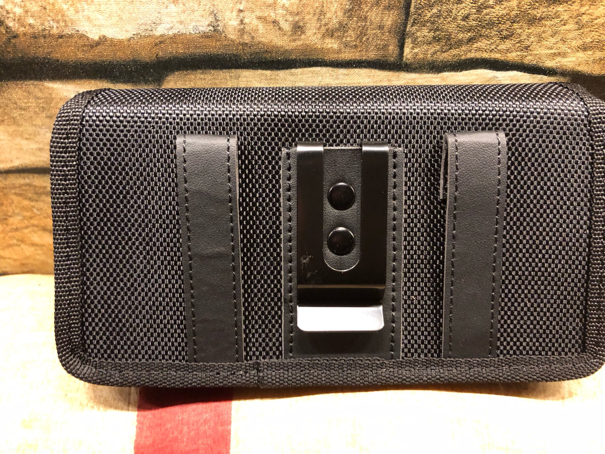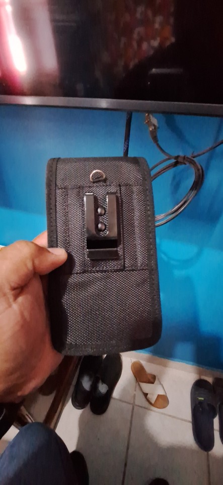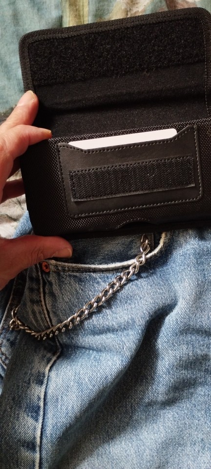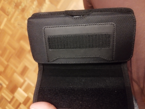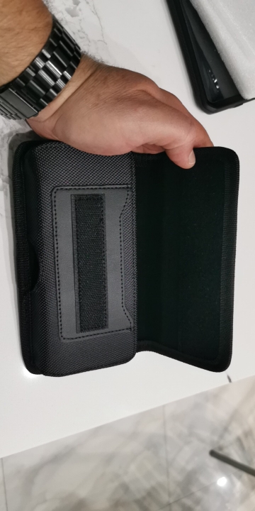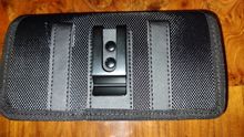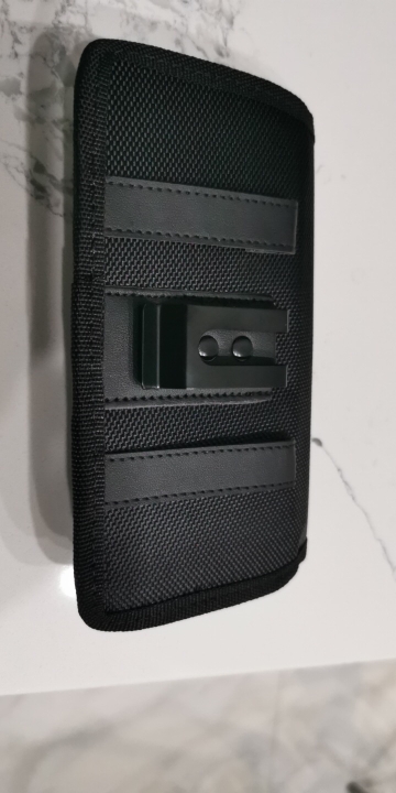 Strong phone pouch. With wide velcro catch and a strong metal belt clip on the rear. Overall, it is great value for money. Delivered on time.