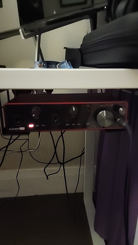 As expected, I used to place a scarlett 4I4 audio interface under the desk