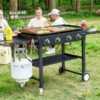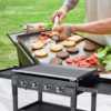 This family-friendly portable gas grill is a must-have for any BBQ enthusiast. Boasting 60,000 BTUs, it heats up quickly and efficiently, with four control knobs to adjust the temperature of each of the four individual burners. The handle design makes it easy to put on and take off the griddle plate, while the waste oil cup collects waste oil and the grease catch pan prevents oil from dropping. The cylinder holder base provides a secure place for your gas cylinder, and its versatile cooking capabilities allow you to cook a range of foods including eggs, pancakes, bacon, steak, and potatoes. It’s ideal for use on your patio, in your garden, or in your backyard. Assembly is made easy with the clear instructions provided, and the smooth surface ensures effortless cleaning. Don’t hesitate to order this Portable Gas Grill today!